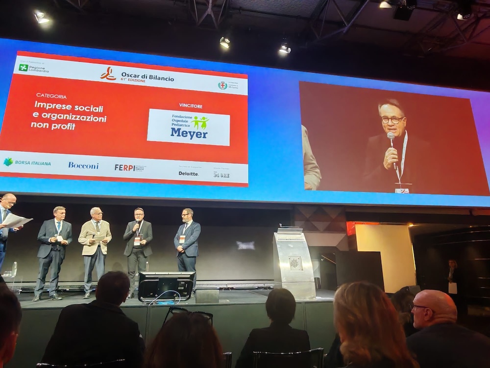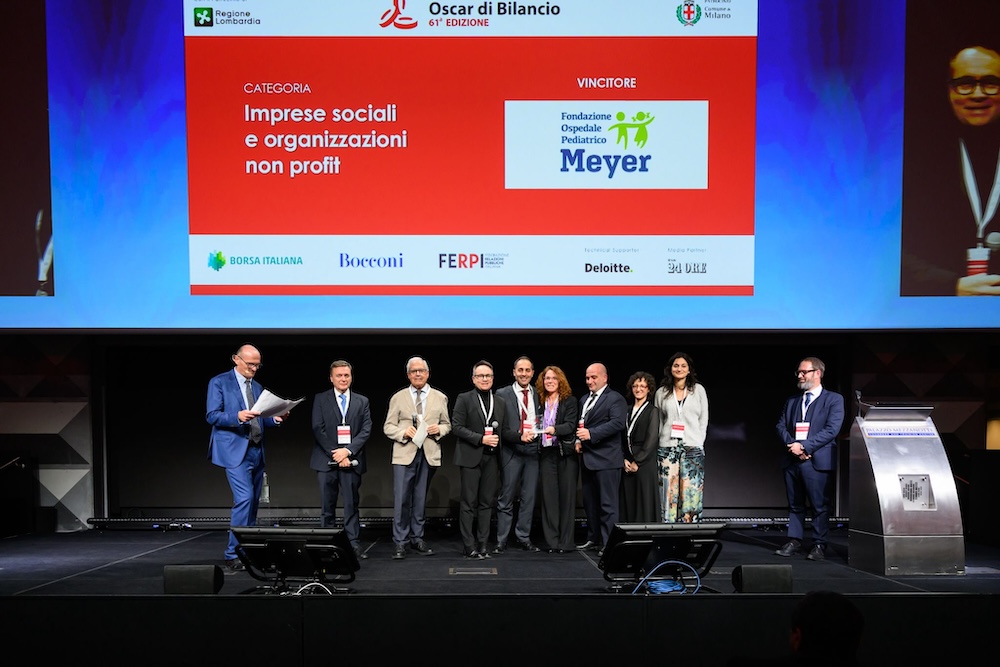 La Fondazione Meyer torna ad aggiudicarsi l'Oscar di Bilancio, il più ambito premio italiano per la qualità e trasparenza dei bilanci sociali e di sostenibilità. Il prestigioso riconoscimento è stato ottenuto nella categoria “Imprese sociali e organizzazioni non profit”. La cerimonia di premiazione del prestigioso appuntamento dedicato alle migliori pratiche di rendicontazione e trasparenza promosso da Borsa Italiana, Università Bocconi e FERPI-Federazione Relazioni Pubbliche Italiana e giunto ormai alla 61esima edizione, si è tenuta ieri sera a Milano a Palazzo Mezzanotte, sede di Borsa Italiana.