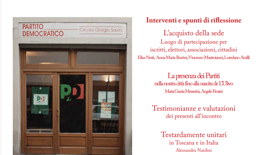 La sede di via IV Novembre, nel cuore del centro storico, acquistata recentemente dall’Unione comunale di San Miniato, grazie ai successi delle Feste de l’Unità determinati dall’impegno dei nostri volontari, vogliamo che diventi luogo di partecipazione democratica, aperto ad associazioni culturali, gruppi di volontariato, aggregazioni giovanili, cittadini che intendono confrontarsi per contribuire a migliorare le condizioni di vita della nostra comunità.