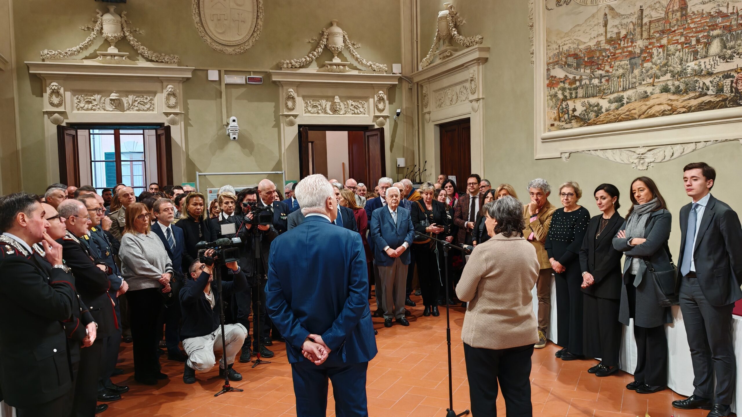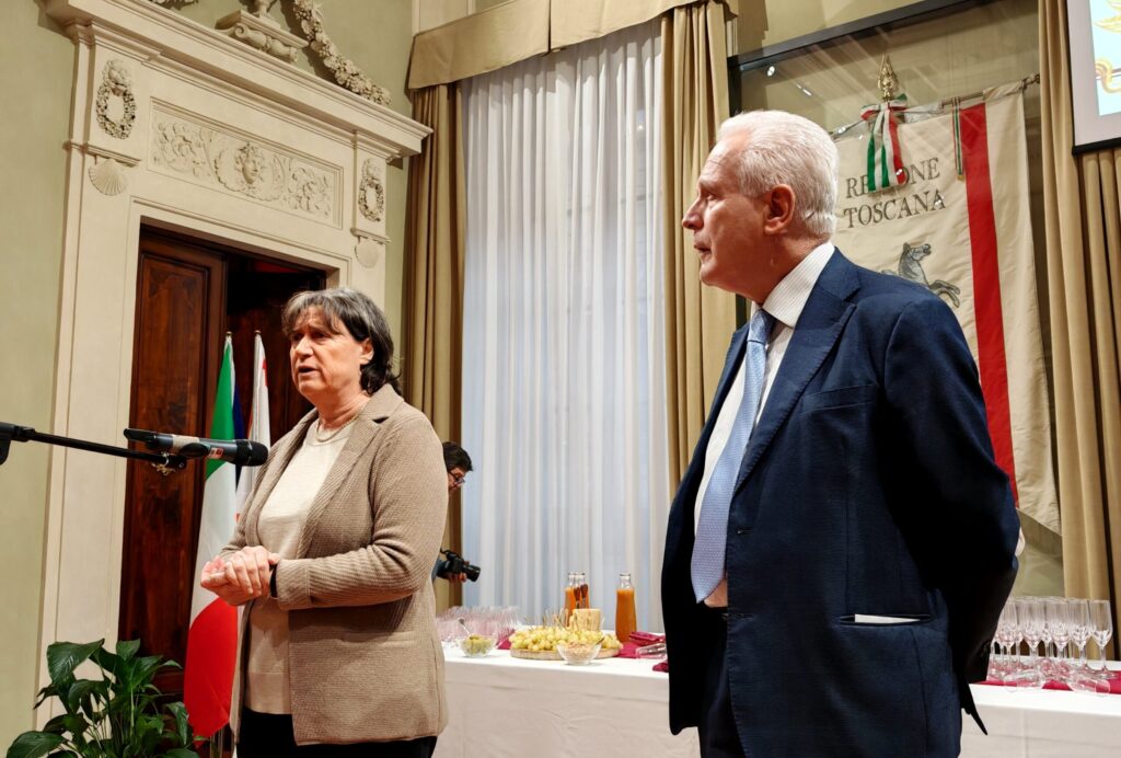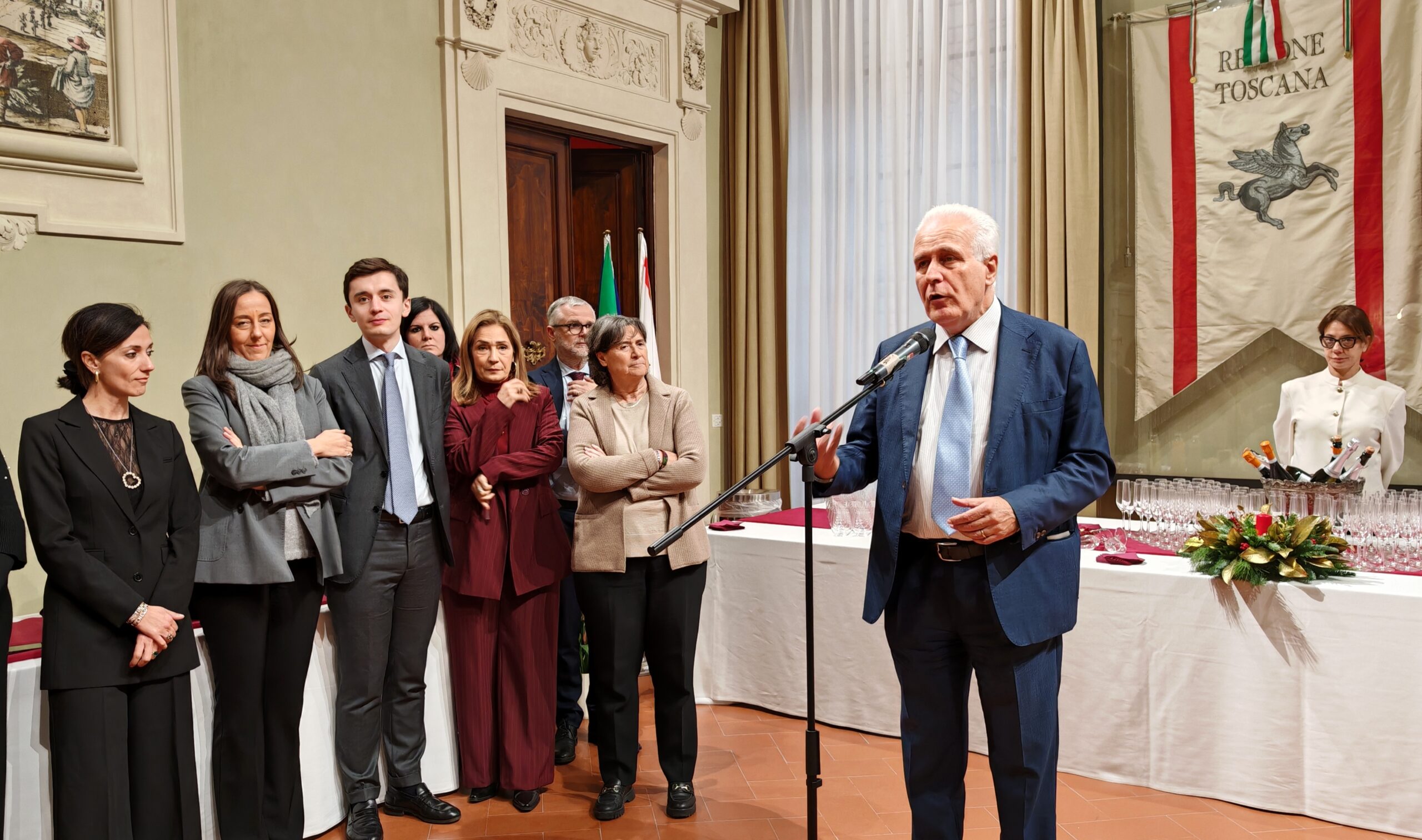In sala Gonfalone a palazzo del Pegaso di fronte alle autorità civili e militari si è svolto il tradizionale scambio di auguri di Natale, con i presidenti del Consiglio e della Giunta Regionale Stefania Saccardi ed Eugenio Giani. Erano presenti anche tanti consiglieri regionali e membri dell’Ufficio di presidenza dell’Assemblea legislativa, la Difensore Civica Lucia Annibali, il Garante dei detenuti Giuseppe Fanfani, la sindaca di Firenze Sara Funaro.
