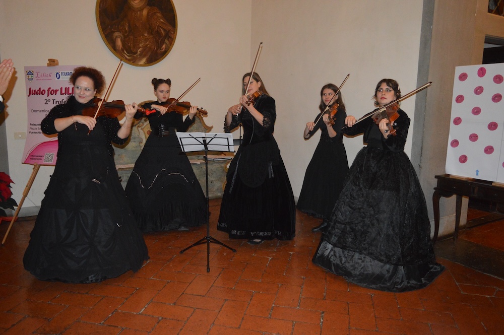 La serata è stata condotta dalla presentatrice d’eccezione Benedetta Giuntini, attrice e autrice insieme a Katia Beni dello spettacolo “Diritti o rovesci… ma pari!”, che proprio poche settimane fa è andato in scena per due serate di raccolta fondi per le attività del Centro Lilith. Tra una portata e l’altra, gli ospiti sono stati coinvolti dall’intrattenimento di Andrea Mancusi, prestigiatore comico che ha portato ai tavoli leggerezza e stupore con i suoi trucchi, mentre l’aperitivo è stato animato dalla musica di ArchiMossi, la prima orchestra itinerante per archi amplificati singolarmente: tutte violiniste, capaci di passare con ironia e grazia dalla tradizione irlandese a quella slava, dalle Danze Ungheresi di Brahms alle suite rinascimentali, fino alla musica contemporanea.