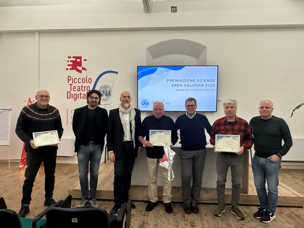 CNA Pisa premia le sue aziende virtuose e longeve. Si è svolta ieri, al Piccolo Teatro Digitale di Pontedera, la cerimona di premiazione di quattro imprese che rappresentano un punto di riferimento storico per la Valdera. Un piccolo gesto simbolico quale riconoscimento per la continuità, la qualità e il contributo umano e sociale offerto al territorio nel corso dei decenni.