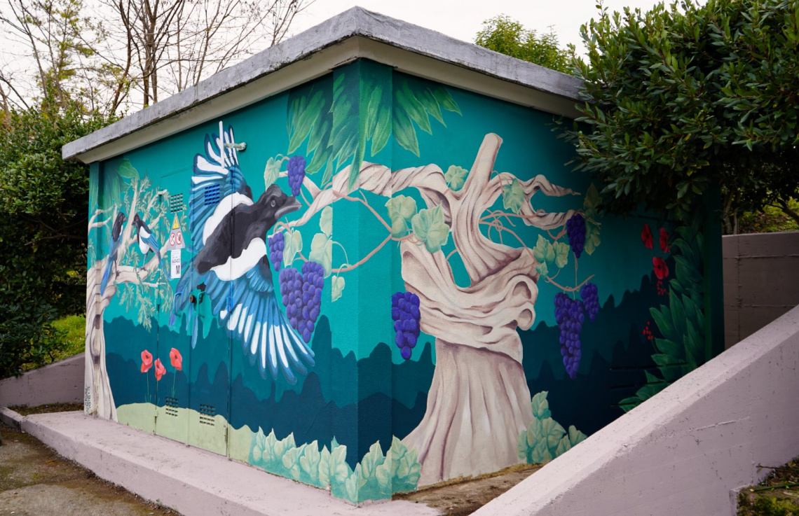 Prima dell’intervento, la cabina presentava superfici ricoperte da scritte e segni eterogenei, privi di un disegno unitario. Oggi, grazie al murale, l’infrastruttura mantiene la sua funzione tecnica ma acquisisce un nuovo valore visivo e simbolico.