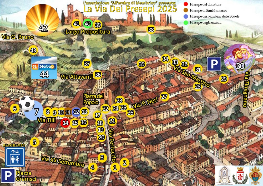 “La Via dei Presepi” è aperta fino al 6 gennaio 2026. Orari: sabato, domenica e festivi 15.00-19.30 (chiuso 31 dicembre). Essa è organizzata dall’Associazione “All’Ombra di Membrino” in collaborazione con il Comune di Castelfiorentino. La manifestazione – come si ricorderà - è inserita in “Terre di Presepi”, la rete cui aderiscono decine di comuni della Toscana (come il Comune di Castelfiorentino). Per ulteriori informazioni: ufficio turistico di Castelfiorentino 0571.629049. Per visionare tutti i presepi che aderiscono al progetto: www.cittadeipresepi.com