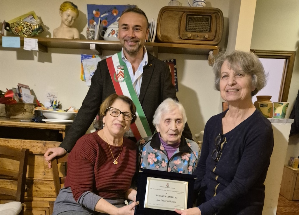 Il 13 dicembre scorso il sindaco Emanuele Caporaso si è recato a portare gli auguri suoi e di tutta l’amministrazione comunale a Luciana Cintelli che ha tagliato il traguardo dei 100 anni di età. Madre di 2 figlie, ha 3 nipoti e vive a Lastra a Signa dal 2017. Nel corso della sua vita ha lavorato per diversi maglifici e filande della zona. Il sindaco ha consegnato a Luciana una targa di auguri in ricordo della ricorrenza.