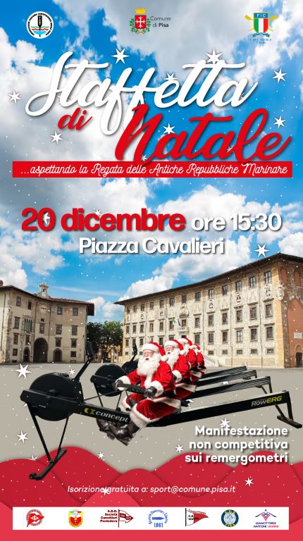 Sport e tradizioni remiere protagoniste in piazza dei Cavalieri sabato 20 dicembre, dalle ore 15.30, con la seconda edizione della staffetta di Natale disputata su remergometri. L’iniziativa rientra nell’ambito delle manifestazioni collaterali che si tengono in occasione della Regata Storica delle Antiche Repubbliche Marinare che nel 2026 sarà ospitata a Pisa.