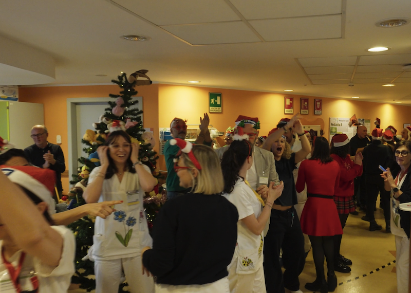 Flashmob natalizio ieri al Meyer. Come spiegato in una nota dall'ospedale pediatrico fiorentino, alcuni operatori sanitari hanno deciso di regalare un momento di leggerezza ai bambini ricoverati e alle loro famiglie, trasformando un pomeriggio qualunque in una piccola festa. Il personale, ognuno con un cappello natalizio in testa, si è riunito ballando e seguendo una coreografia. L’idea è nata dal Consiglio dei ragazzi e delle ragazze del Meyer: i primi a raccoglierla sono stati gli operatori della Pediatria medica A, della Chirurgia pediatrica e delle Neuroscienze. Ma l’iniziativa ha poi coinvolto tanti altri professionisti dell’ospedale, uniti dal desiderio di far sentire vicine le persone che stanno vivendo un periodo delicato. Una danza gioiosa che ha portato sorrisi e musica dentro il Meyer.