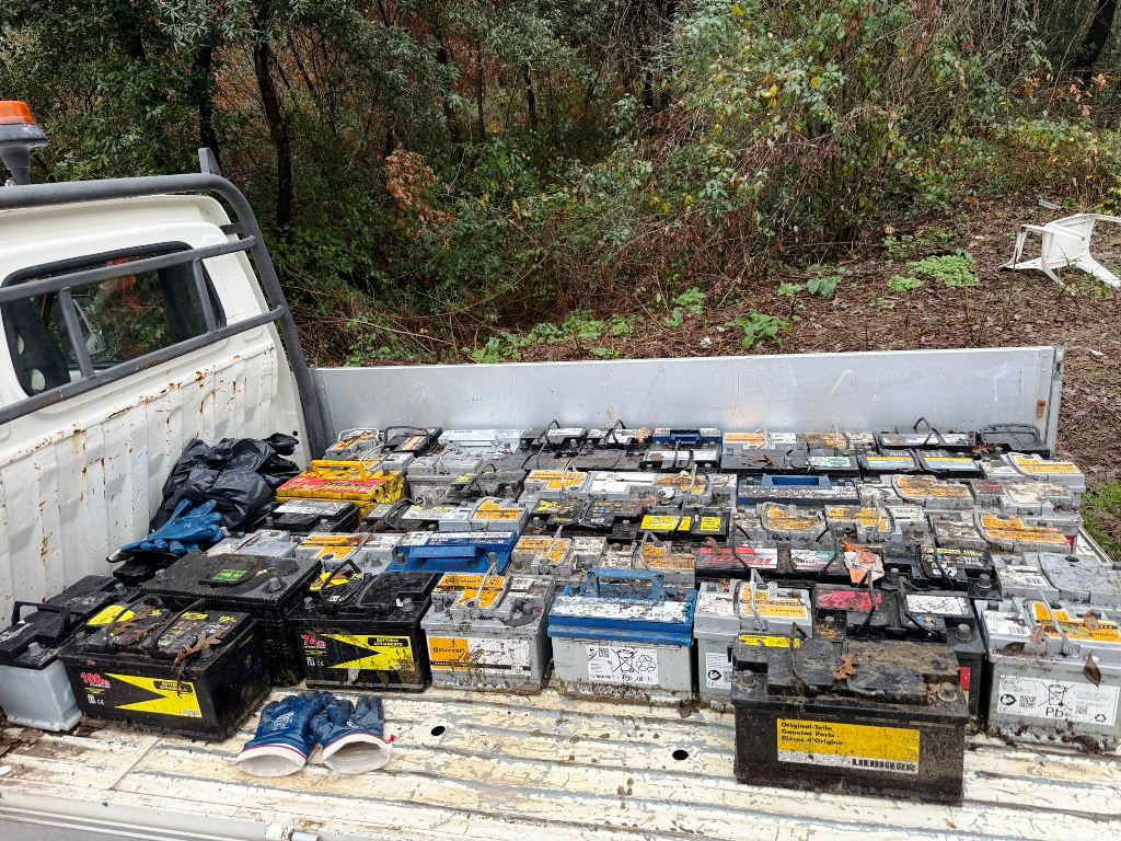 Trovati centinaia di chili di materiali, tra cui 60 batterie per veicoli per avere energia elettrica, tende, coperte, bici, borse, caricabatterie, materassi, generi di prima necessità, una telecamera e anche una roncola