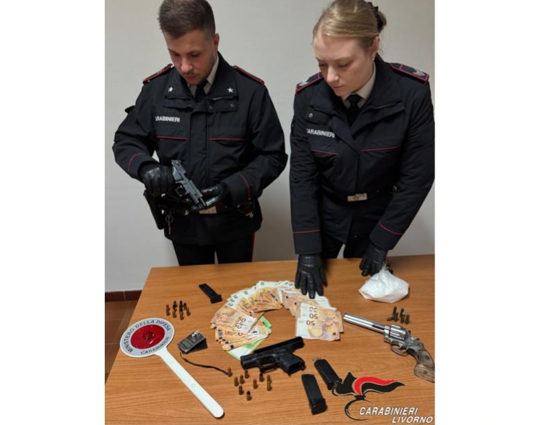 L’uomo è indagato per detenzione illegale di armi e munizioni, ricettazione e spaccio di stupefacenti. È stato trasferito nel carcere di Livorno a disposizione dell’autorità giudiziaria, restando valido il principio di presunzione di innocenza.