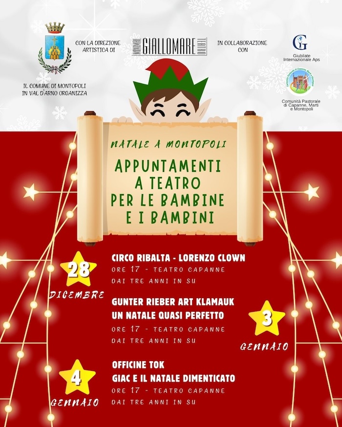 «Teniamo molto a questa programmazione - hanno detto l’assessora all’istruzione Kendra Fiumanò e l’assessore alla cultura Marzio Gabbanini - perché crediamo in una cultura accessibili a tutti e tutte. Come lo scorso anno abbiamo scelto una proposta capace di far divertire e riflettere. Un’occasione per i più piccoli di avvicinarsi al mondo magico del teatro. Grazie alla compagnia teatro Giallomare che ha curato gli spettacoli, all’associazione Giubilate e la comunità pastorale di Montopoli, Marti e Capanne con don Udoji per il supporto e la collaborazione».