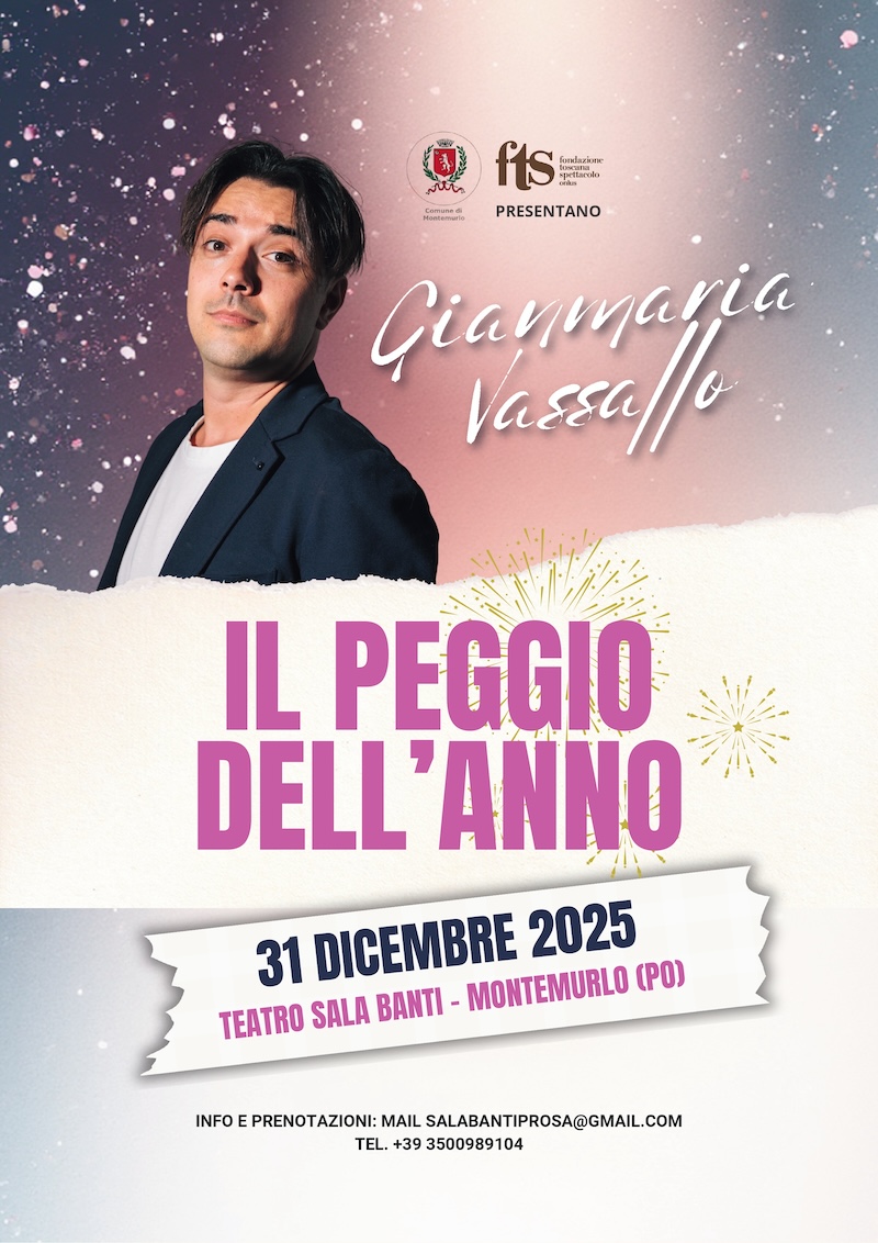 L’appuntamento è per mercoledì 31 dicembre dalle 22,30 e lo spettacolo è fuori abbonamento. Gianmaria Vassallo è un poliedrico artista fiorentino noto come attore comico e cantautore che si è imposto riproponendo in chiave moderna il repertorio del cantastorie Odoardo Spadaro a cui ha dedicato il musical “Il mio nome è Spadaro”. Ha portato in scena spettacoli di successo come Toscano per caso, che è diventato anche un album, e Chiacchiericci in cui interpreta un pettegolo corniciaio rinascimentale. Attore anche per il cinema, ha collaborato con Leonardo Pieraccioni nei film Il sesso degli angeli e Pare parecchio Parigi. A mezzanotte lo spettacolo si ferma e si brinda con spumante e panettone, offerto dal Comune a tutti gli spettatori. La prenotazione biglietti si può fare tramite whatsapp al numero 350 0989104 o chiamando dal lunedì al venerdì ore 18 – 20 tramite mail all’indirizzo salabantiprosa@gmail.com.