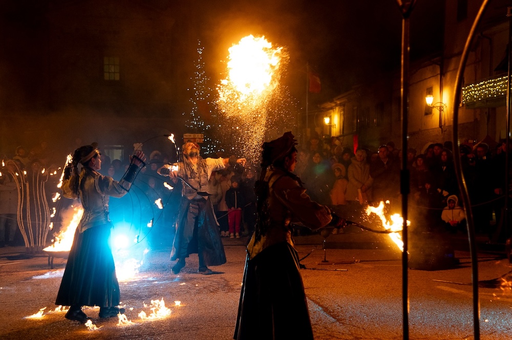 Alle 17:00 lo stupore si sposterà in Piazza del Popolo verso il cielo con “Piano Sky” del Cardinali Group: un pianoforte a coda e una pianista sospesi in aria suoneranno dal vivo melodie delicate e suggestive, creando un’illusione scenica unica al mondo e regalando un’emozione sospesa, letteralmente, sopra il pubblico. Subito dopo, alle 17:30 sulla Terrazza del Palazzo Senza Tempo, il ritmo e la luce prenderanno vita con “Lightdance” dei Lux Arcana, uno spettacolo che fonde giocoleria luminosa, danza, arti marziali ed effetti speciali in un’esperienza visiva ipnotica. A concludere la serata, alle 18:00 in Piazza Fra Domenico, sarà la forza del fuoco con “Igniferi” di Lucie Vendlova: una figura femminile potente, quasi ancestrale, danzerà con le fiamme creando un racconto visivo intenso, simbolico e fortemente evocativo.
