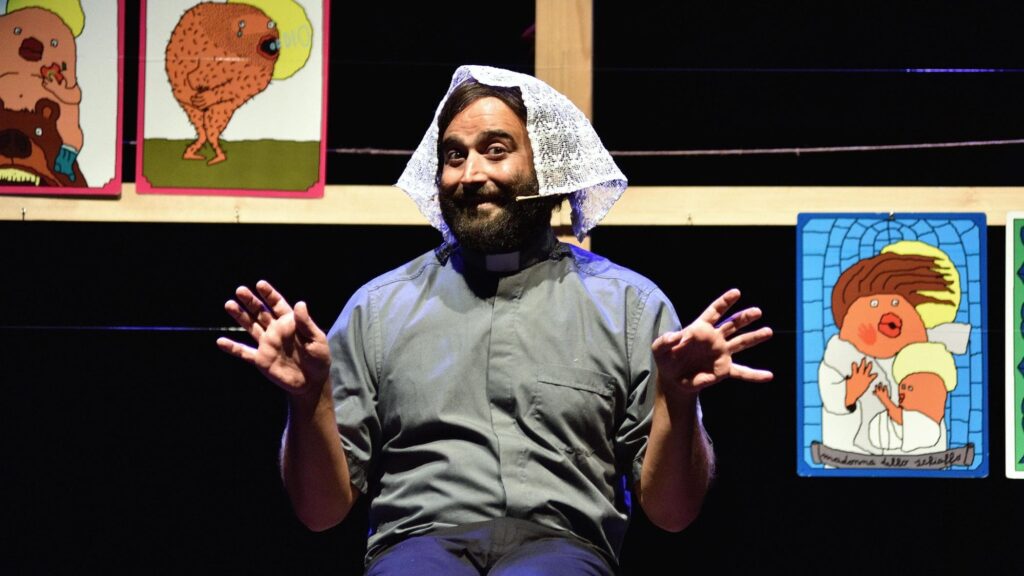 Al Minimal Teatro di Empoli Luca Zacchini e Francesco Rotelli interpretano il ruolo di due preti sgangherati in 'La coppa del santo'