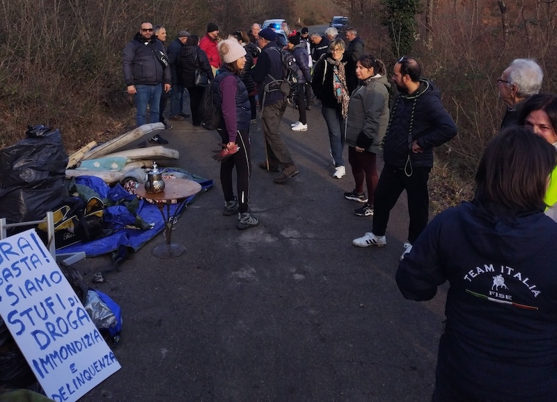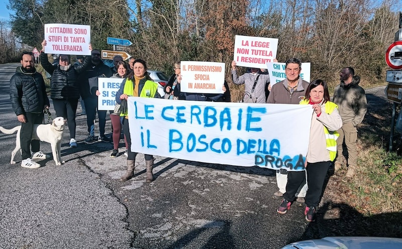 "Le Cerbaie meritano rispetto! No droga e degrado" si legge in uno degli striscioni appesi in zona dai partecipanti, arrivati sul posto con altri cartelli con frasi di protesta, "basta, siamo stufi di droga, immondizia e delinquenza". Presenti, da quanto si apprende l'indomani all'iniziativa, una cinquantina di persone scortate, come reso noto dagli organizzatori, dalla presenza di polizia municipale e carabinieri, ringraziati pubblicamente dal comitato sulla propria pagina facebook. In azione anche i volontari e le volontarie che hanno ripulito l'area: "È stato trovato anche un bivacco, con tenda e materasso in mezzo al bosco. Municipale e carabinieri lo hanno smantellato" racconta Carmine Testa di Plastic Free Santa Croce sull'Arno, tracciando un bilancio dell'evento. "Abbiamo raccolto una quantità sterminata di bottiglie di plastica, vetro, bottiglie anche con la carta stagnola sopra, una carcassa di auto fatta a pezzi, un motorino, sedie, materassi, pneumatici, una bombola del gas, diversi fornellini da campeggio e tante batterie di auto".