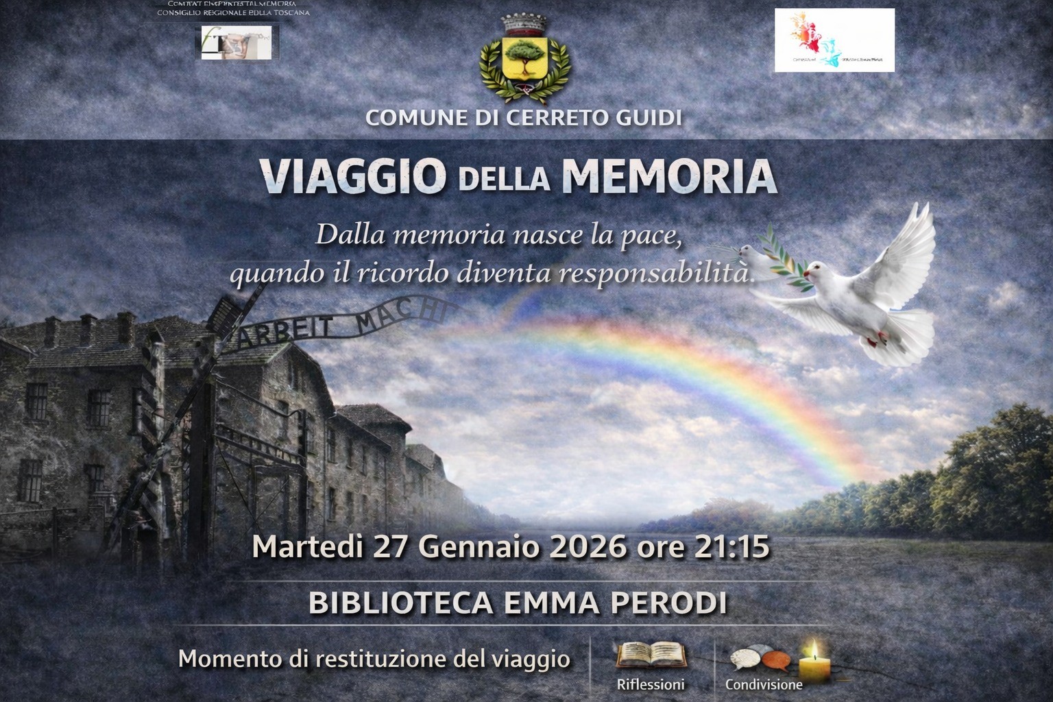 L’appuntamento è per Martedì 27 gennaio alle ore 21,15 con l’iniziativa “Viaggio della Memoria 2025. Dalla memoria nasce la pace, quando il ricordo diventa responsabilità”.