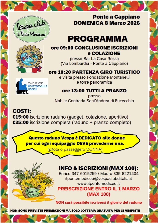 Un’occasione unica per celebrare le donne, riscoprire la storia di Fucecchio e vivere un’esperienza in Vespa all’insegna della cultura e dell’amicizia.