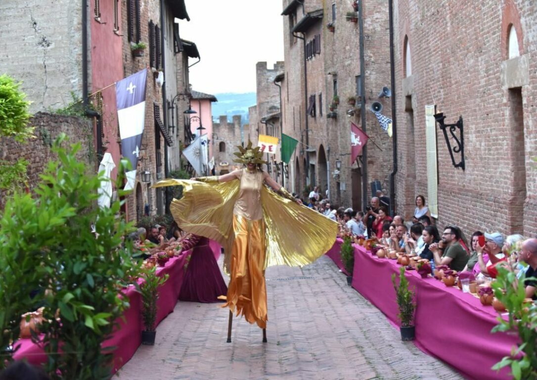 L’evento propone una suggestiva ricostruzione storica ambientata nel 1400, ispirata ai grandi convivi che si tenevano nel borgo quando Firenze insediò a Certaldo il Vicario della Repubblica. In occasione della festa di San Giovanni, la via centrale del castello ospitava banchetti di notabili e proprietari terrieri, animati da spettacoli, danze e meraviglie d’epoca. A questa tradizione si unisce il ricordo dell’ospitalità di Giovanni Boccaccio, che nella sua casa accoglieva amici ed eruditi.