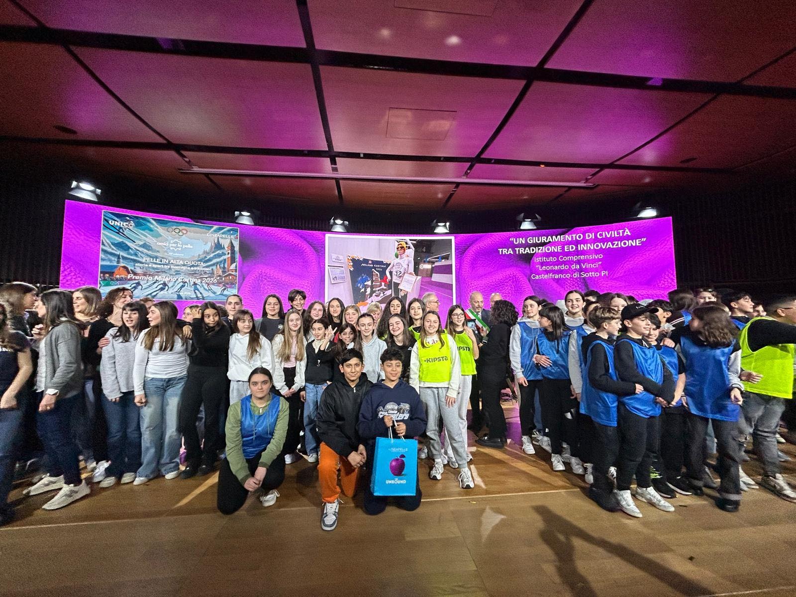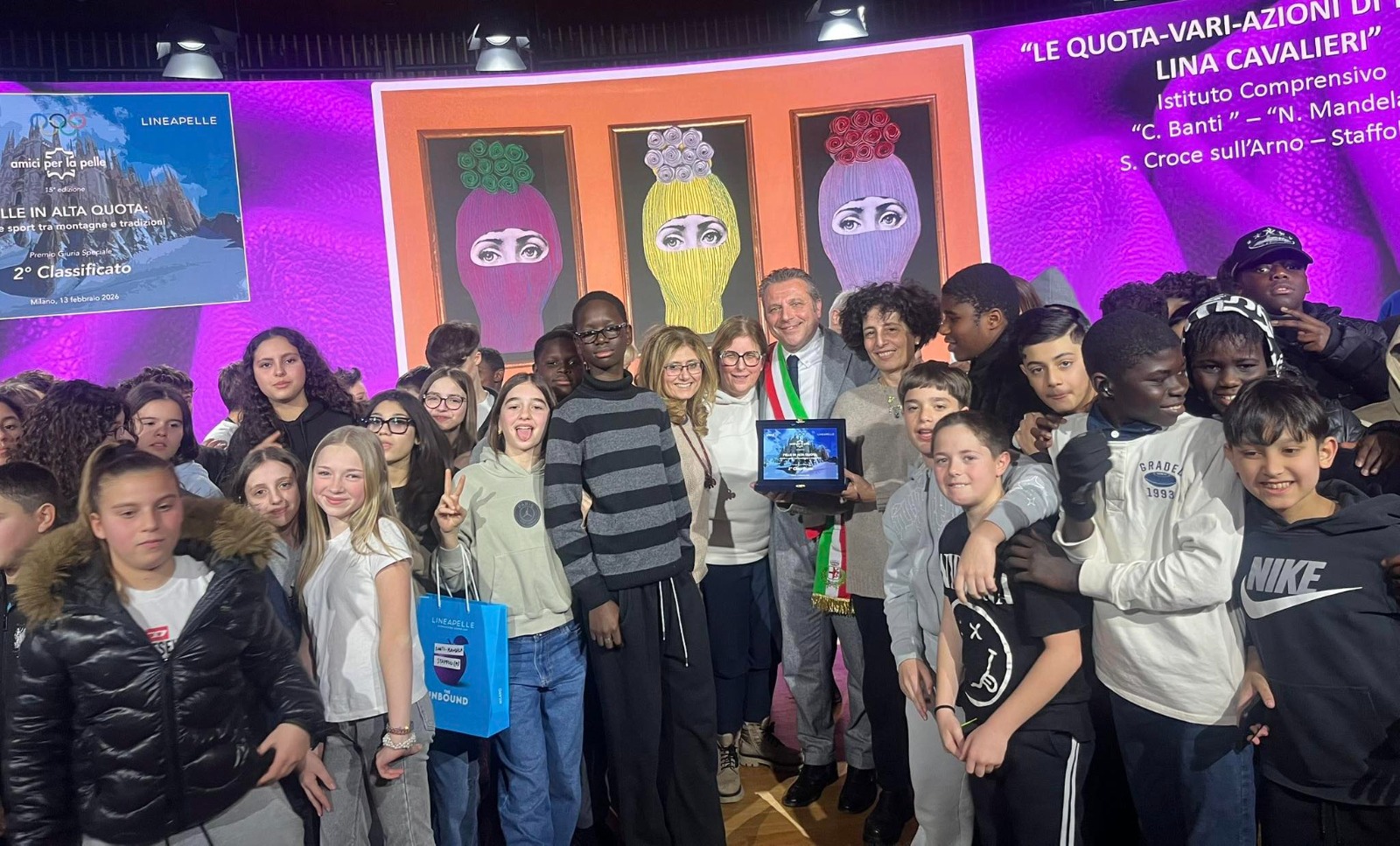 Gli studenti di Santa Croce si sono piazzati bene, ottenendo il secondo premio Giuria Speciale, mentre i ragazzi dell'istituto di Castelfranco di Sotto hanno raccolto il premio speciale 'Milano Cortina' con “Un’opera che unisce sport, montagna e pelle, quest’ultima insieme al cuoio radici della nostra comunità” come ha sottolineato il sindaco Fabio Mini. “I ragazzi sono stati magnifici come ogni anno – ha aggiunto Mini -, ma questa volta hanno ricevuto un riconoscimento meritatissimo. Per me e l’assessore Nicola Sgueo è stato emozionante salire sul palco con tutti loro”.