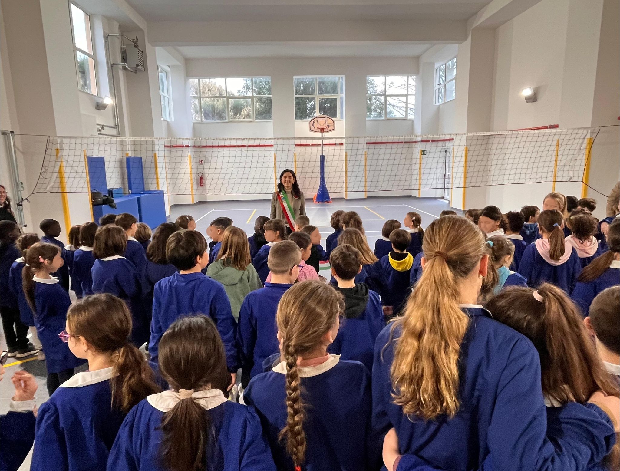 Se il primo lotto, infatti, ha riguardato sia la messa in sicurezza, sia l'adeguamento statico e sismico dell'intero immobile oltre alle opere di finitura necessarie per garantire la ripresa dell'attività didattica il prima possibile, il secondo ha avuto per oggetto le opere di completamento della palestra e del refettorio. Nello specifico i lavori svolti hanno riguardato: il ripristino della gronda, l’installazione di un motore elettrico per aperture a vasistas delle finestre nella palestra, nuovo impianto di riscaldamento, il ripristino delle finestre e del soffitto della palestra con il rivestimento delle travi e dei giunti, tramite posa di contro-soffitto anti-sfondellamento, antiurto da pallone e certificato REI. Infine, il ripristino dell'impermeabilizzazione della copertura, la sistemazione esterne delle rampe e il ripristino dei marciapiedi rotti. Dove prima c’erano gli ambulatori medici e una casa famiglia adesso c’è una palestra con doppi spogliatoi e doppi bagni e una sala mensa che può ospitare fino a 100 bambini contemporaneamente garantendo un ciclo unico di somministrazione. Questa mattina, lunedì 16 febbraio si è svolta l’inaugurazione insieme ai bambini e le bambine di tutte le classi, alla dirigente Alessandra Lupetti, alle insegnanti, ai tecnici degli uffici comunali e alle operatrici della ditta Camst che si occupano del servizio mensa.