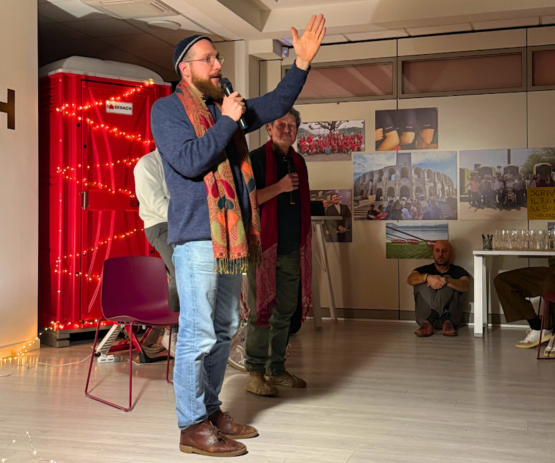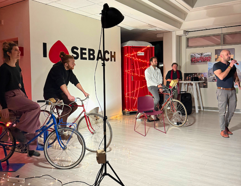Per questa edizione Sebach ha sviluppato un’idea originale, proponendo sempre un evento di sensibilizzazione verso i temi del risparmio energetico ma legandolo anche a cultura e tradizione. È così che il 16 febbraio ha preso vita “E il pedalar m’è dolce in queste rime – Poesia ad energia pulita”, una performance artistica che ha unito parole, corpi ed energia in un unico flusso condiviso. Protagonisti dell’evento sono stati i poeti improvvisatori Fabrizio Ganugi e Gabriele Ara, impegnati in alcuni contrasti in ottava rima, antica tradizione poetica toscana fatta di improvvisazione, ironia e sfida dialettica – un modo dunque di riscoprire un patrimonio culturale locale. A rendere l’esperienza ancora più significativa è stata la scelta di alimentare l’intero spettacolo esclusivamente a pedali: luci e impianto audio hanno funzionato grazie a biciclette generatrici messe a disposizione dall’associazione Jam Lab di Borgo San Lorenzo (Firenze) che promuove laboratori per la divulgazione scientifica, con il coinvolgimento diretto del team Sebach: in sella, insieme, per trasformare lo sforzo fisico in energia pulita.