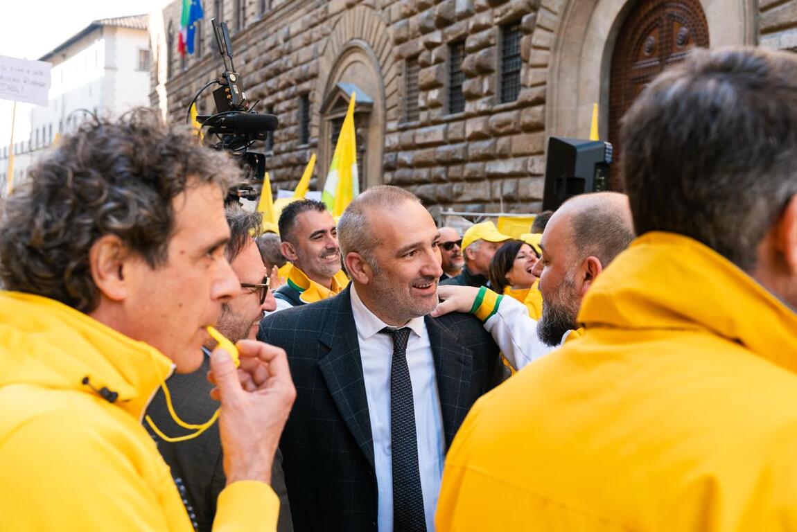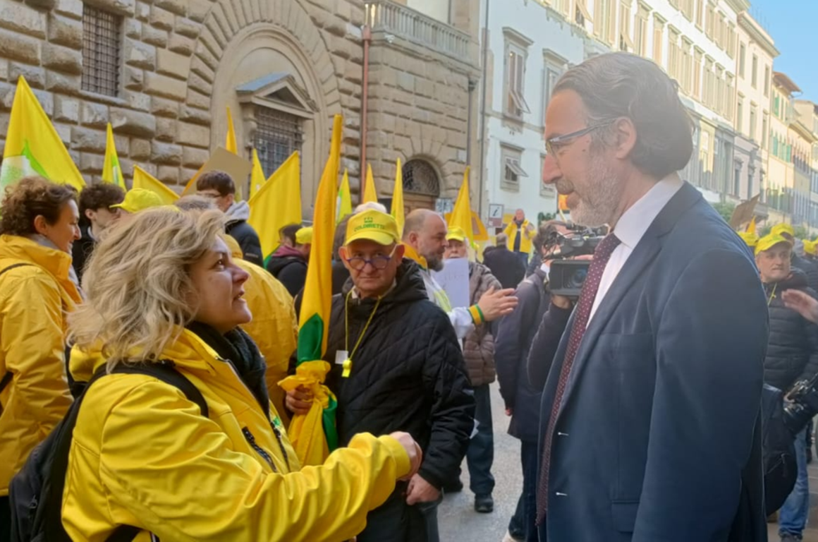 In migliaia gli agricoltori di Coldiretti che stamani si sono riuniti sotto la sede del Consiglio regionale toscano in via Cavour per chiedere tutele e sostegno ai coltivatori, e il rilancio delle filiere. Armati di campanacci, bandiere e cartelli, gli oltre 4mila agricoltori da tutta la Toscana, all'indomani della mozione a sostegno del Made in Italy, con Brenda Barnini (Pd) prima firmataria, gli agricoltori sono scesi sotto la sede del consiglio per consegnare il manifesto con le loro 12 priorità per il sistema agricolo, da attuare entro i prossimi 100 giorni. Il manifesto è stato il risultato di un lungo percorso di ascolto che ha coinvolto 20 mila imprese, culminato con la redazione di una vera e propria piattaforma di impegni .