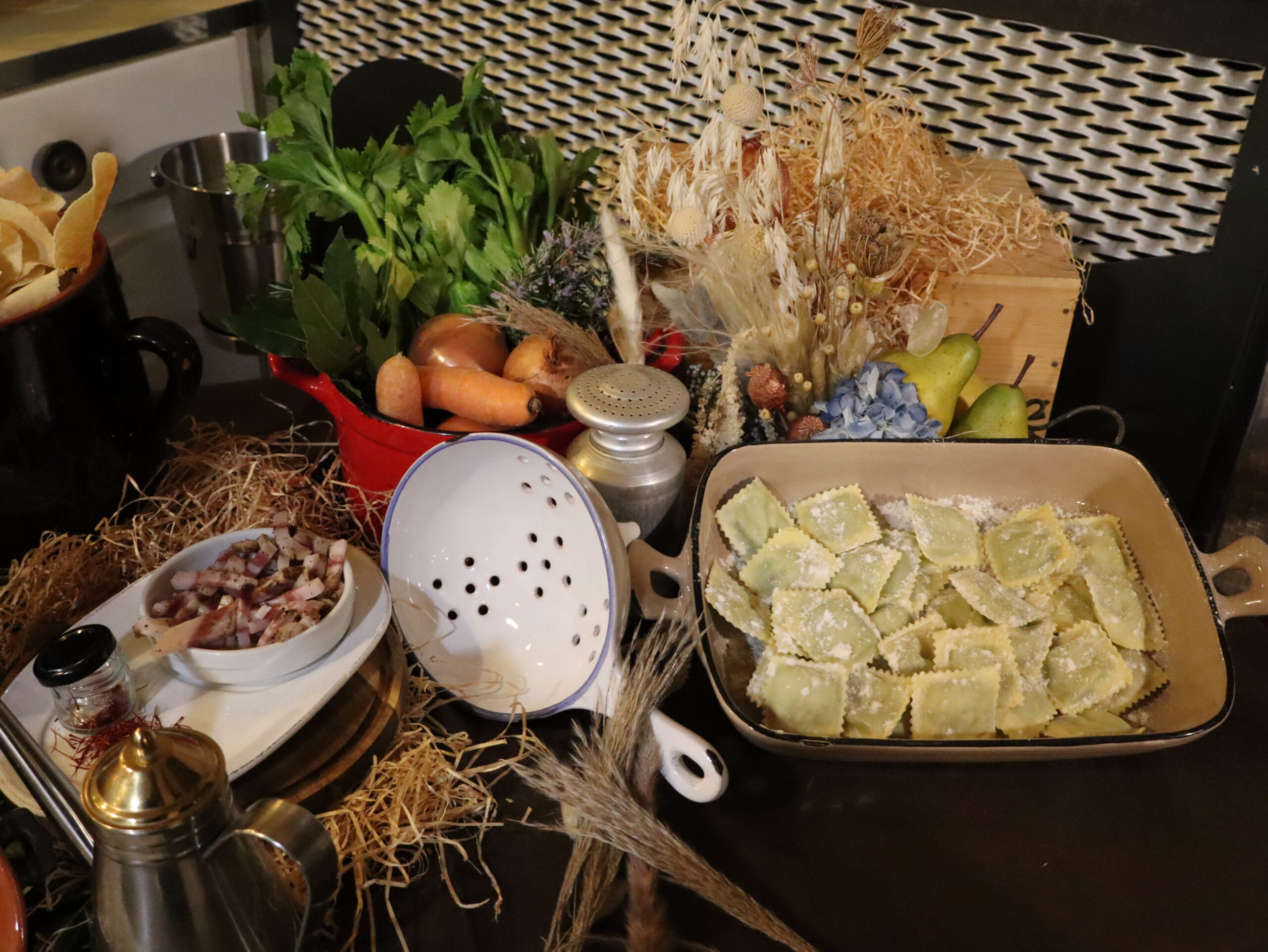 Il menù proposto ha portato in tavola i sapori più autentici del territorio, a partire proprio dall'immancabile carciofo, con uno sformatino di carciofi con fonduta di pecorino e pistilli di zafferano Dop. A seguire, un bis di primi composto da raviolo pesciatino al ragù bianco di Cinta Senese Dop e risotto all'empolese. Come secondo, stracotto di guancia di vitellone accompagnato da carciofi stufati e, per concludere, una millefoglie di brigidini.