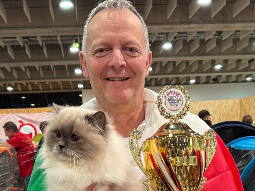 Grande soddisfazione per l'allevamento empolese Astrid's Dream, gestito da Stefano e Daniele Bicchi. Il gatto di razza Sacro di Birmania Perseus - nome completo CEW'26 GIC CH Soul of Diamonds Perseus JW - ha conquistato il primo premio al Central European Show, il campionato europeo felino che si è svolto il 21 e 22 febbraio a Graz, in Austria. Alla competizione hanno preso parte circa 350 gatti provenienti da diversi Paesi europei, suddivisi per categorie.
