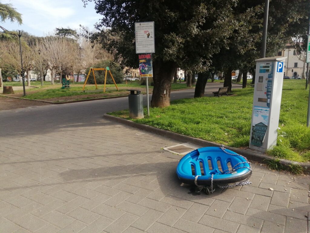 La foto del seggiolino staccato e buttato per terra ha fatto il giro dei social, venendo pubblicata e condivisa da alcuni gruppi che monitorano gli episodi di degrado nel territorio empolese.