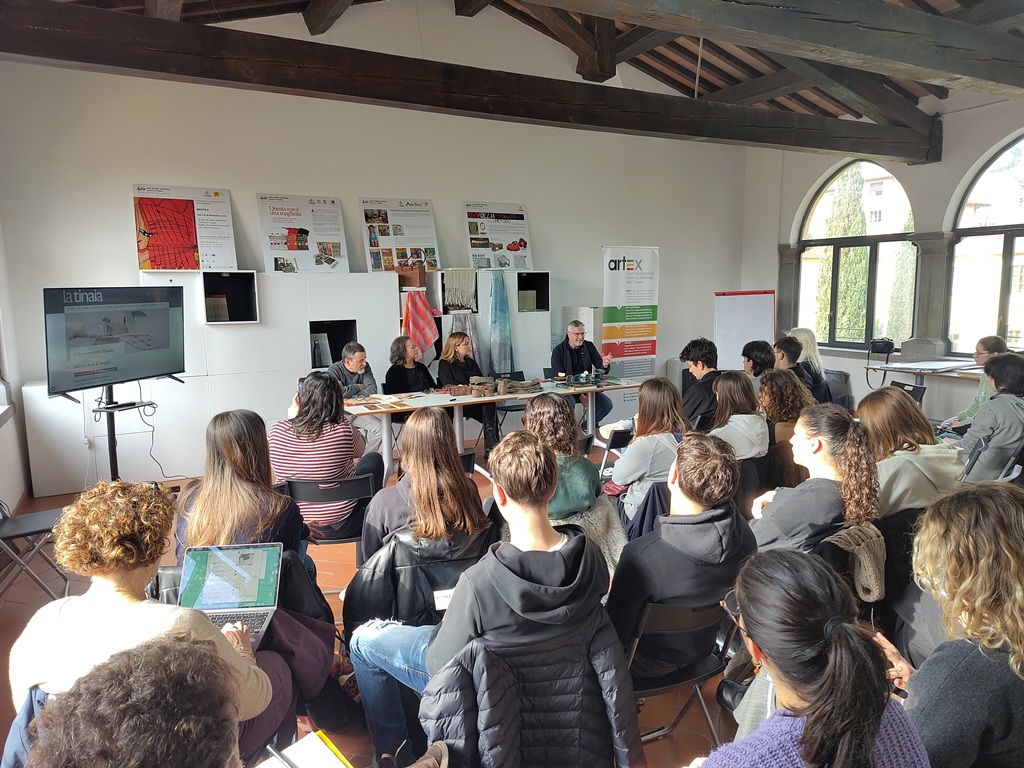 La giornata, introdotta dalla coordinatrice di Artex, Elisa Guidi e dal presidente de La Nuova Tinaia, Francesco Nocentini, ha visto quindi intervenire quattro realtà artigiane, tante quante sono gli ambiti di ricerca e sviluppo offerti dal contest che si è chiuso il 28 febbraio: erano presenti con opere e strumenti del mestiere Diamantina Palacios per il tessile, Renato Olivastri per l’intarsio del legno e Roberta Giannoccaro per il micromosaico in vetro; lo Studio Ceramico Giusti ha partecipato con un video messaggio. I professionisti hanno raccontato le potenzialità espressive e tecniche di ciascuna lavorazione, offrendo la possibilità di tradurre tali suggestioni artistiche in oggetti di design contemporaneo. Successivamente è stata mostrata nel dettaglio una selezione di opere degli artisti della Tinaia, e poi gli studenti hanno iniziato a lavorare sulle idee progettuali confrontandosi sia con gli artigiani che con i professori.
