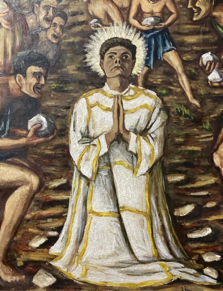 I due dipinti, di proprietà della Parrocchia, rappresentano San Martino e Santo Stefano, Patroni della comunità di San miniato Basso, testimoniano la sensibilità pittorica di Enzo Giani, artista profondamente legato alla tradizione figurativa e alla dimensione religiosa, capace di interpretare con intensità espressiva le figure dei santi: San Martino, simbolo di carità e condivisione, e Santo Stefano, primo martire Cristiano, emblema di fede e testimonianza. Le opere rispecchiano il clima culturale degli anni Cinquanta e rappresentano un esempio significativo della produzione sacra dell’artista.