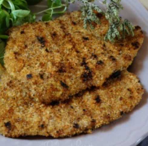 Sono "Cotolette" passate nell'uovo e nel pangrattato ma poi non dovranno essere fritte ma cotte su piastra. Ho visto anche una versione dove non c'era l'uovo, e prima di passarle nel pangrattato le fette di carne sono spennellate con olio di oliva, dove potete mettere anche un po' di succo di limone, per aromatizzarle e renderle più gustose.