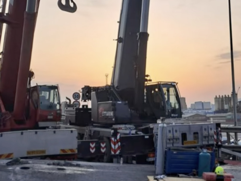 La struttura è stata riportata in posizione orizzontale con tre gru. Il traffico pesante sarà deviato sul ponte di viale Mogadiscio mentre proseguono i lavori di riparazione del meccanismo di apertura