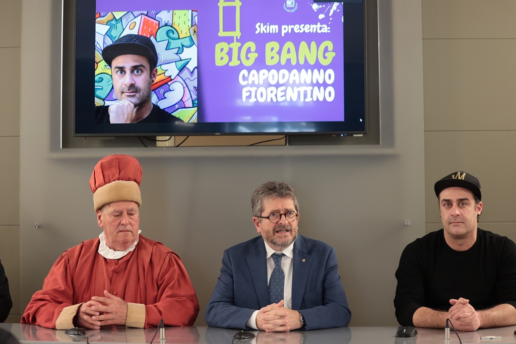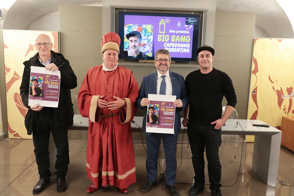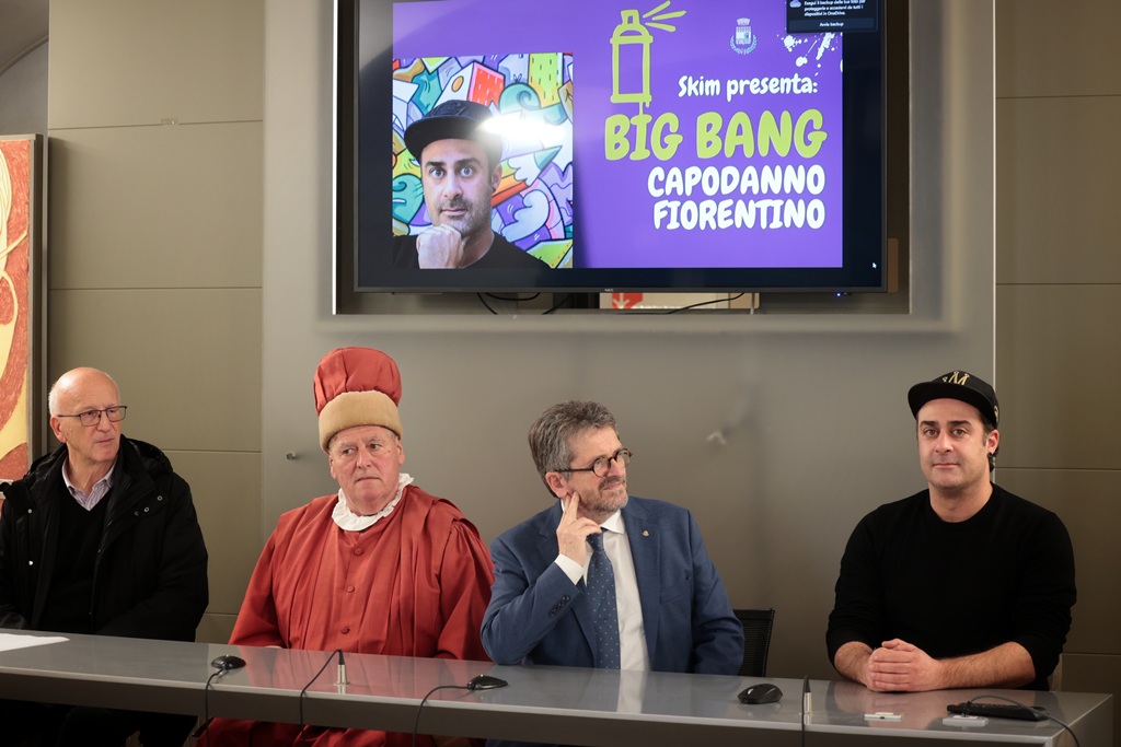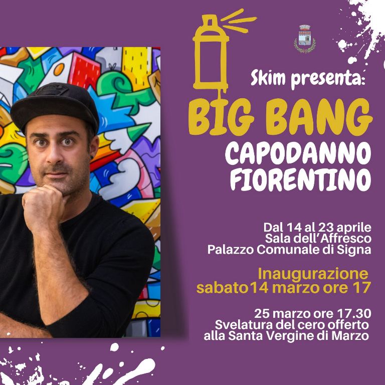 L’energia cromatica e il linguaggio contemporaneo dell’artista Skim entrano nel cuore di una delle tradizioni più antiche del territorio. È stata presentata questa mattina nella Sala Oriana Fallaci di Palazzo Medici Riccardi a Firenze la mostra “Big Bang Capodanno Fiorentino”, esposizione che sarà inaugurata sabato 14 marzo alle ore 17 nella Sala dell’Affresco del Comune di Signa. Presenti il sindaco di Signa Giampiero Fossi, l’artista Skim, il presidente del Corteo Storico, Lorenzo Gori, insieme al gonfaloniere Daniele Mazzei.
