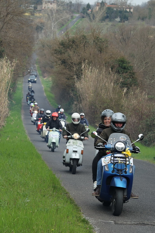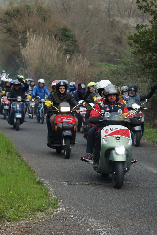 La regola dell’evento era semplice: ogni equipaggio doveva avere almeno una donna a bordo, alla guida o sul sellino posteriore. Un modo diretto e concreto per celebrare la giornata dell’8 marzo, senza trasformarla in una cerimonia troppo solenne. E così il corteo di Vespe ha preso il via attraversando le vie di Ponte a Cappiano, le campagne circostanti di Fucecchio, i vicoli di San Pierino e le colline panoramiche di Le Vedute, regalando ai partecipanti scorci inediti del territorio, con vigneti, oliveti e piccoli borghi che sembrano fermi nel tempo e con quella calma festosa che solo i raduni vespistici riescono a mantenere.