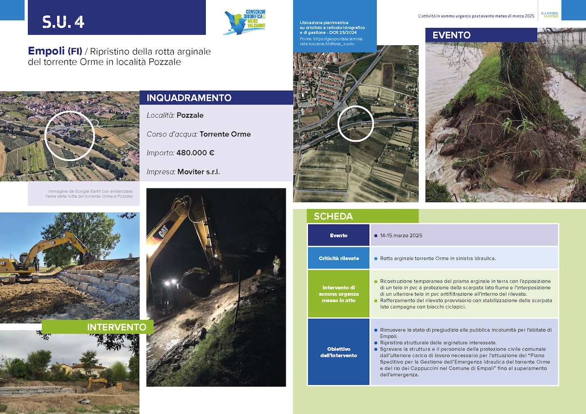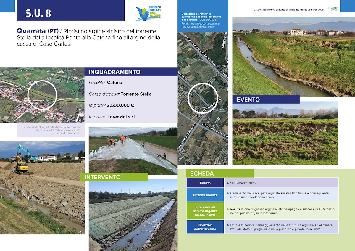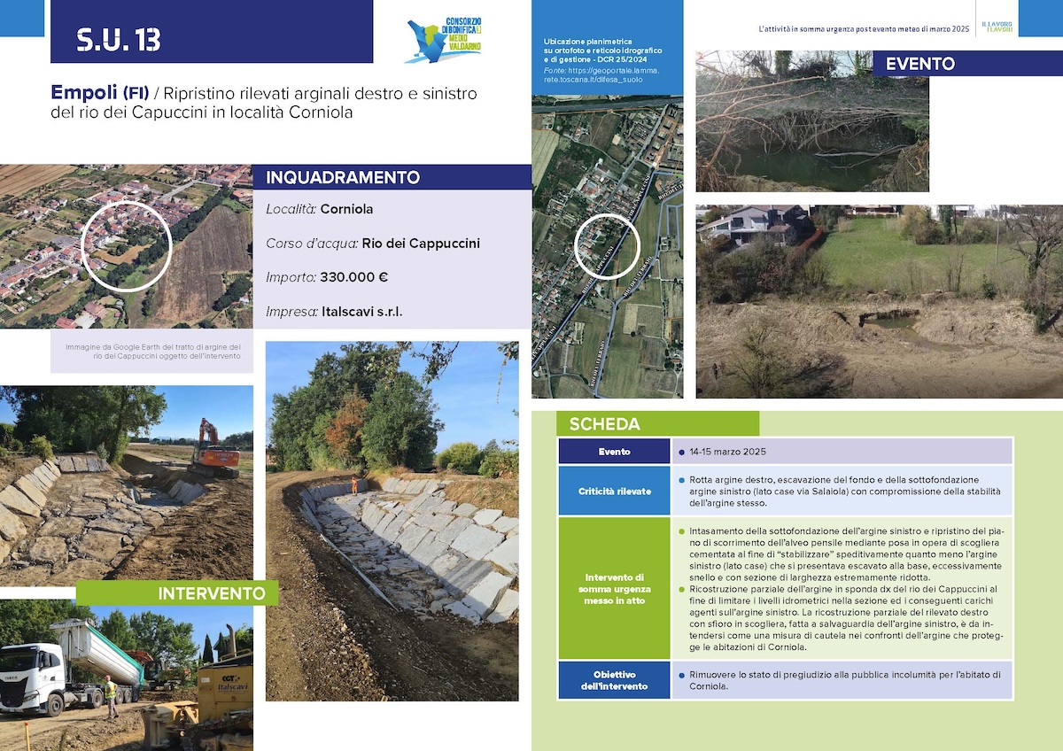"Tutti gli interventi sono sostanzialmente terminati da tempo o siamo alle rifiniture finali; oltre a riparare i danni e a riportare alle condizioni pre-evento si sono restituiti corsi d'acqua con opere e sistemazioni idrauliche in grado di garantire una maggiore sicurezza idraulica ai territori interessati – ha detto il Presidente del Consorzio di Bonifica 3 Medio Valdarno, Paolo Masetti - Lavori straordinari, realizzati in accordo e stretta collaborazione con la Regione che per il Consorzio si sono sommati all'attività ordinaria, quotidiana che è abbiamo svolto senza alcuna perdita di attenzione. Questo anno di lavori è la dimostrazione delle professionalità tecnico-operative ma anche amministrative e finanziarie e che il nostro Consorzio di Bonifica e i consorzi di bonifica toscani sono in grado di mettere in campo in materia di difesa del suolo per la resilienza climatica della nostra regione, anche come esempio per l'intero sistema Paese".