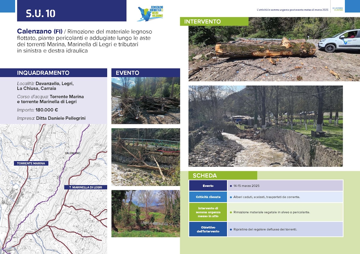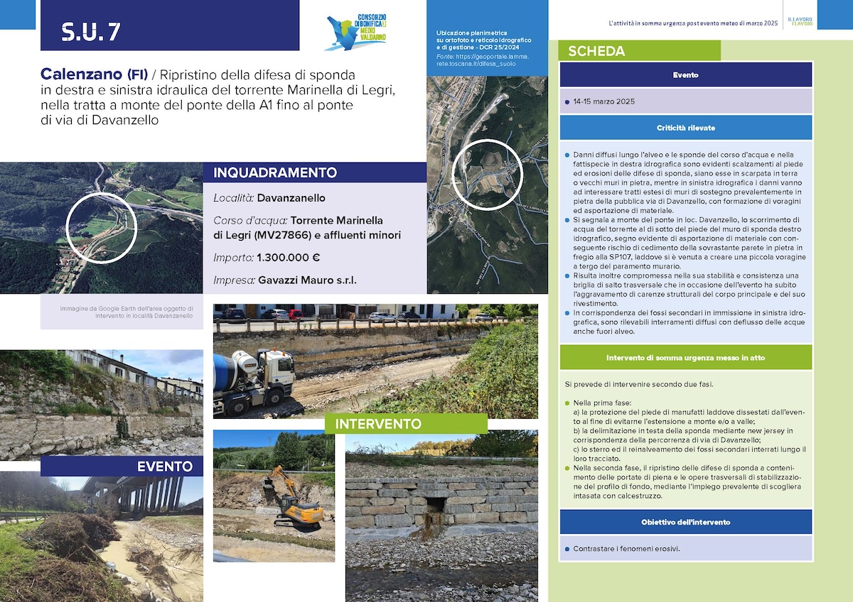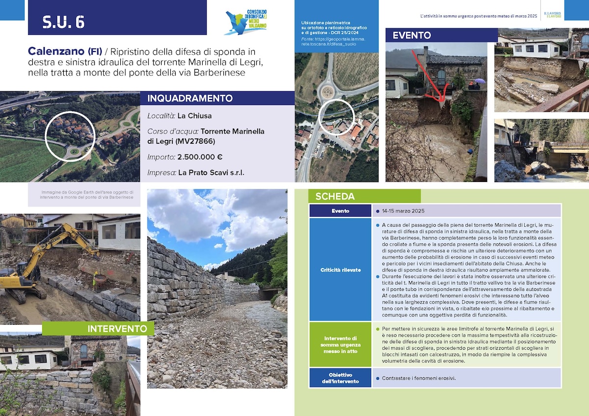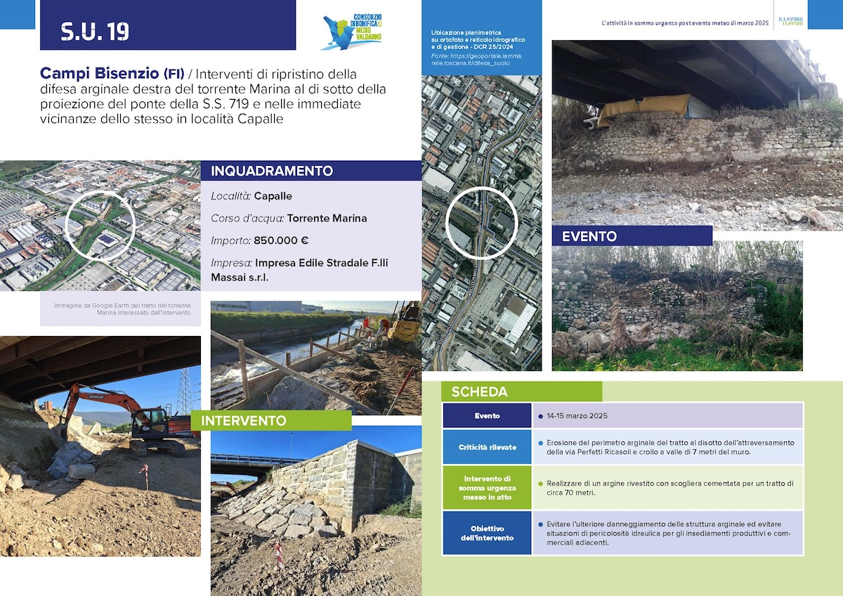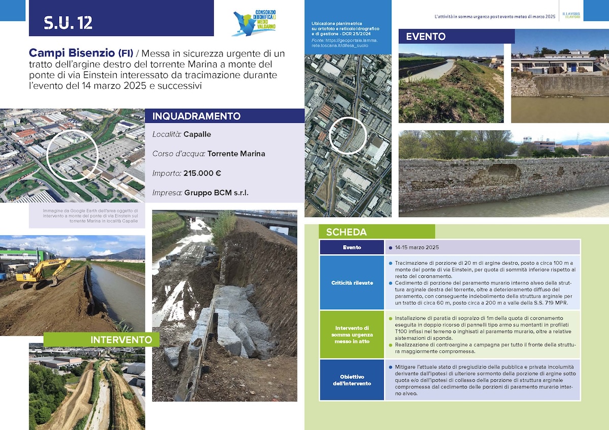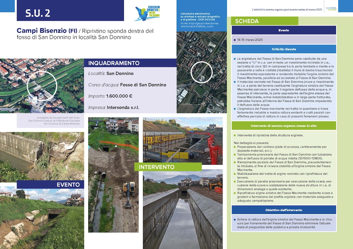 Nella sala Pegaso di Palazzo Strozzi Sacrati si è fatto il punto, in particolare, sui lavori di somma urgenza del Consorzio di Bonifica nel Comprensorio di Bonifica 3 Medio Valdarno: 20 interventi diffusi sul territorio per un valore complessivo di poco meno di 19 milioni che oltre a Sesto Fiorentino, con la demolizione del ponte di Piazza del Mercato ed il rifacimento delle spallette di contenimento, hanno interessato gran parte della Piana Fiorentina (Calenzano, Campi Bisenzio, Signa e Firenze), l'area Pistoiese (Agliana e Quarrata) ed Empoli fino ad arrivare anche ai confini regionali con l'intervento per la pulizia dai rifiuti del Torrente Rovigo a Palazzuolo sul Senio.