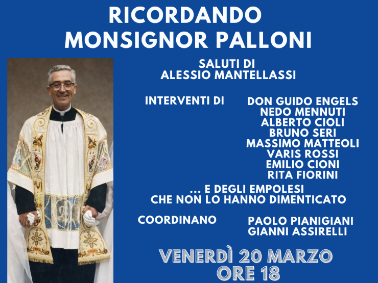 'Ricordando monsignor Palloni' è il tema dell'iniziativa in programma venerdì prossimo, 20 marzo, alle 18 alla sala delle Adunanze della Misericordia di Empoli. A ricordare il Proposto di Empoli, scomparso proprio il 20 marzo del 1972, saranno alcune persone che lo hanno conosciuto ed apprezzato durante il suo servizio nella chiesa empolese avvenuto nel difficile periodo della seconda guerra mondiale.