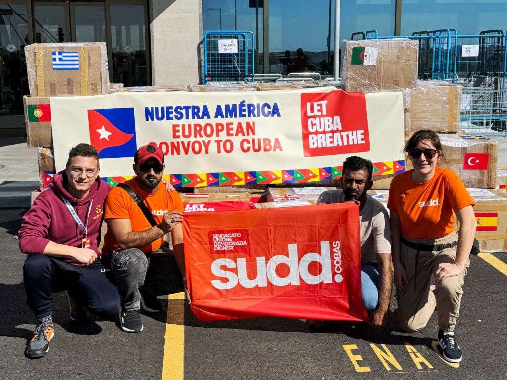 Una delegazione del Sudd Cobas è in partenza per Cuba nell’ambito del Nuestra America European Convoy to Cuba, iniziativa internazionale di solidarietà con l’isola. L’obiettivo della missione è consegnare medicinali e partecipare alla mobilitazione contro l’embargo statunitense.