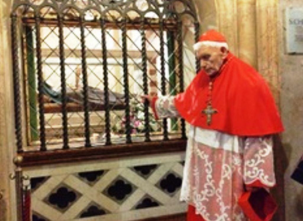 Il porporato quasi ormai centenario ,non è voluto mancare a venerare il corpo di San Francesco nell’ostensione straordinaria dei resti mortali nel giubileo per gli 800 anni dalla morte del santo.
