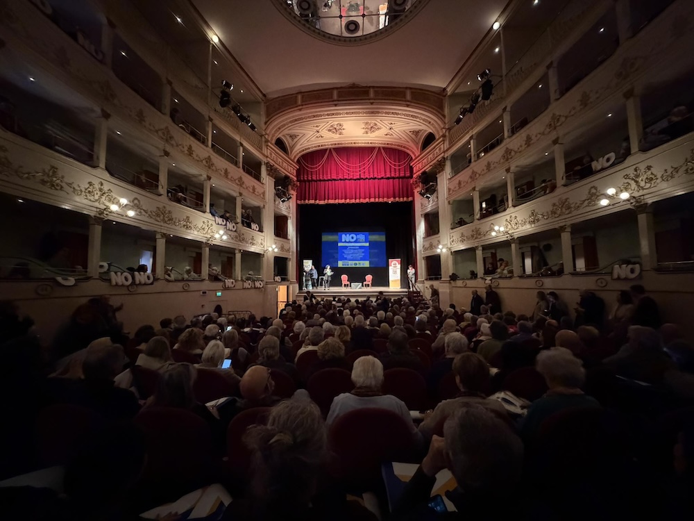 Centinaia di cartelli con la scritta "No" hanno aperto questa sera la chiusura della campagna referendaria sulla riforma della giustizia, promossa dai comitati per il No della Toscana, al Teatro Niccolini di Firenze. Sul palco, nell'ultimo momento di confronto prima del voto di domenica 22 e lunedì 23 marzo, interventi di giuristi, esperti, politici, scrittori, attori e personaggi dal mondo dello spettacolo.