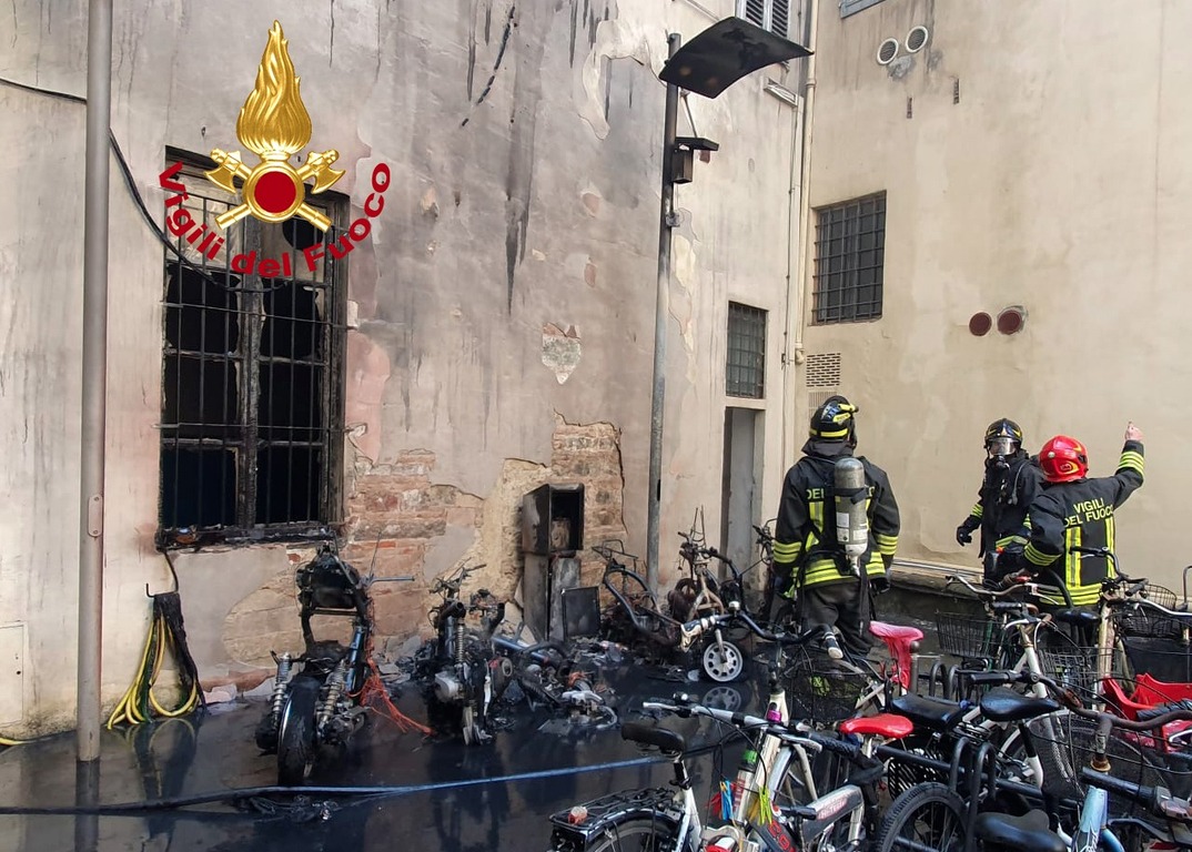 Secondo quanto riferito, il rogo avrebbe coinvolto cinque ciclomotori, di cui uno con doppia alimentazione elettrica vicino a una stazione di ricarica.