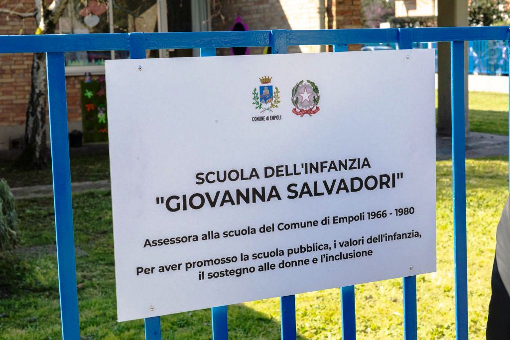 “Oggi celebriamo una persona del nostro passato recente che, tra i tanti doni che ha fatto alla sua comunità, ha portato una cosa importantissima: una visione di città nell'ambito scolastico ed educativo – ha dichiarato il sindaco di Empoli, Alessio Mantellassi –. Ha creato le fondamenta per una comunità educante all'avanguardia, attiva nella formazione continua, presente nello sbrogliare le questioni legate alle bambine e ai bambini. Ha capito questioni di cui oggi si dibatte come quella della conciliazione tra lavoro e famiglia, ha studiato i modelli pedagogici migliori per portare quella esperienza durante anni ricchi di possibilità. Ricordare il suo nome vuol dire partire dal percorso come assessora, la prima di Empoli, per poi scoprire che si è occupata in prima linea delle donne con l'Udi e la Consulta femminile, delle persone con disabilità, per raggiungere l'obiettivo delle pari opportunità e di una piena inclusione. Quindi ci è sembrato giusto e logico avere uno spazio che porti il suo nome, e quale miglior scelta se non una scuola d'infanzia. Porteremo il suo ricordo e le sue scelte durante il nostro percorso amministrativo perché la strada segnata da Salvadori era la strada giusta”.
