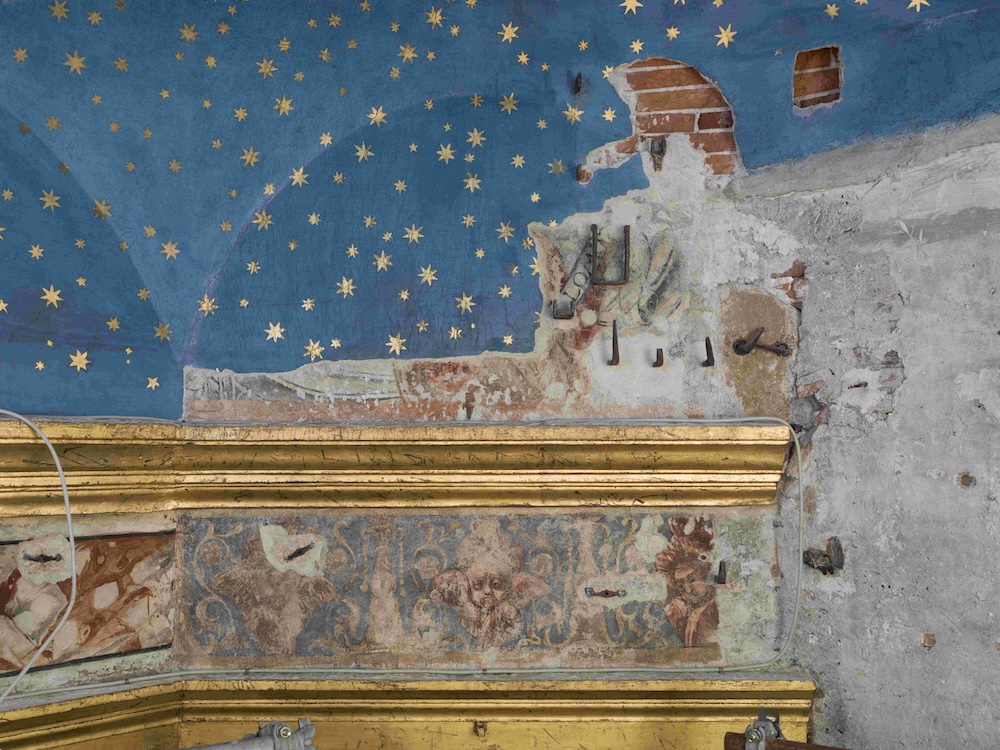 La rimozione di lesene, paraste e pannellature rivestite in velluto, che occultavano gran parte della superficie muraria, ha rivelato elementi inattesi.