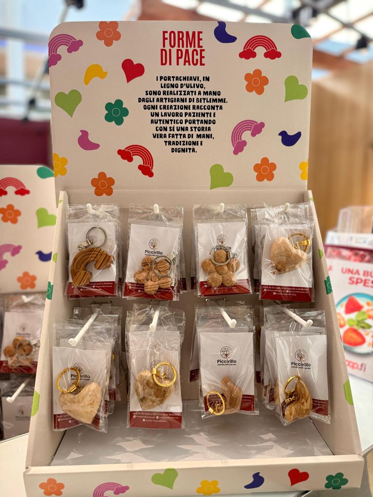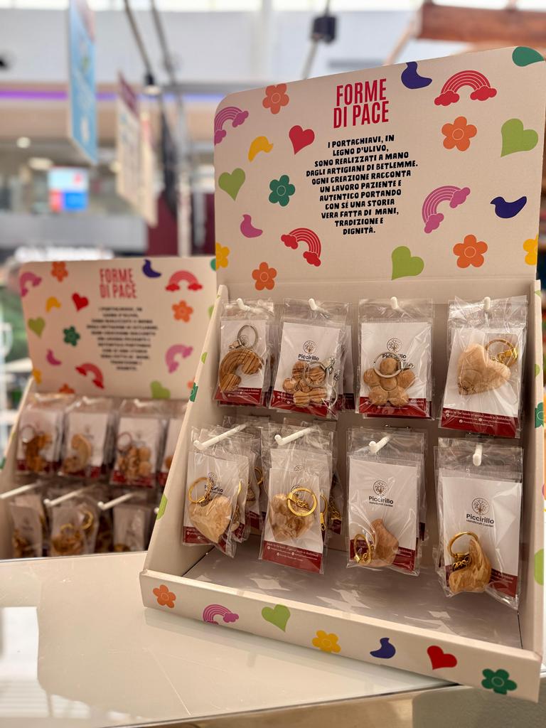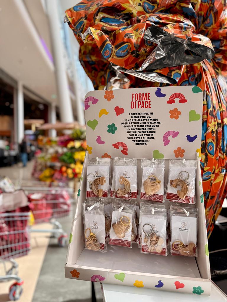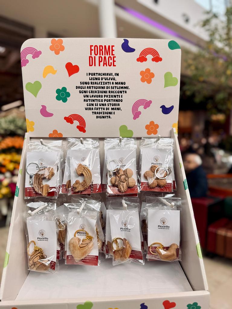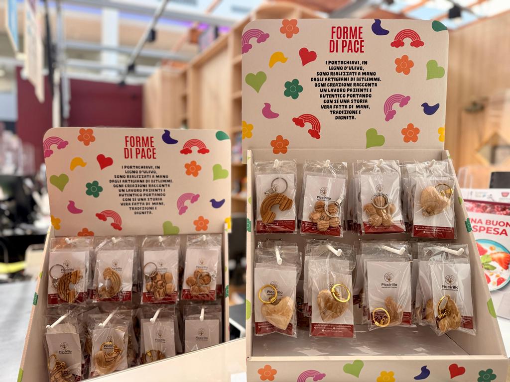Lanciare un messaggio di pace e far arrivare un gesto di solidarietà concreta al territorio palestinese: nel periodo pasquale, Unicoop Firenze sostiene il Piccirillo Handcraft Center di Betlemme con la vendita di portachiavi in legno d’ulivo, realizzati a mano degli artigiani di Betlemme. I manufatti “Forme di pace”, in vendita nei principali supermercati di Unicoop Firenze, sono scolpiti a mano dagli artigiani di Betlemme con legno raccolto in modo sostenibile. Ogni creazione racconta un lavoro paziente e autentico, che porta con sé una storia di inclusione e speranza. I portachiavi raffigurano un arcobaleno, una colomba, un cuore e un fiore: diversi soggetti, un unico messaggio: la pace. Gii oggetti, infatti, saranno in vendita al prezzo di costo e l’intero ricavato andrà a sostenere l’attività artigianale di giovani, donne e persone con disabilità che lavorano nel Piccirillo Handcraft Center. In un momento particolarmente difficile per il popolo palestinese, questa iniziativa rappresenta un sostegno importante per centinaia di persone e offre a soci e clienti la possibilità di partecipare con un gesto di solidarietà semplice e concreto. Gli oggetti saranno in vendita fino a esaurimento scorte.