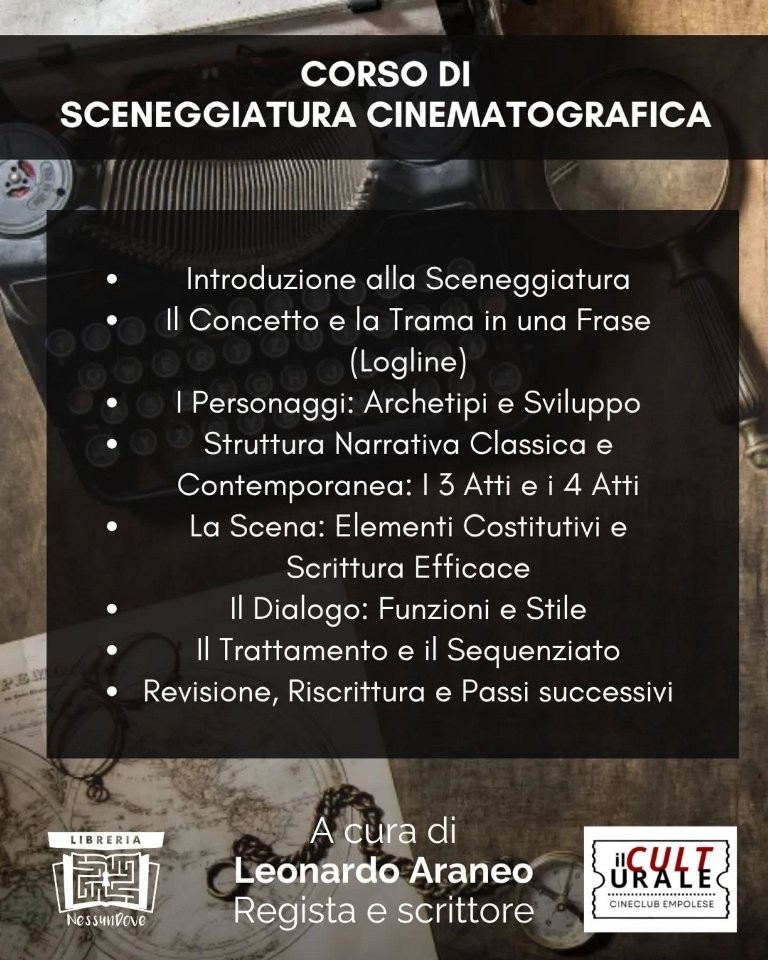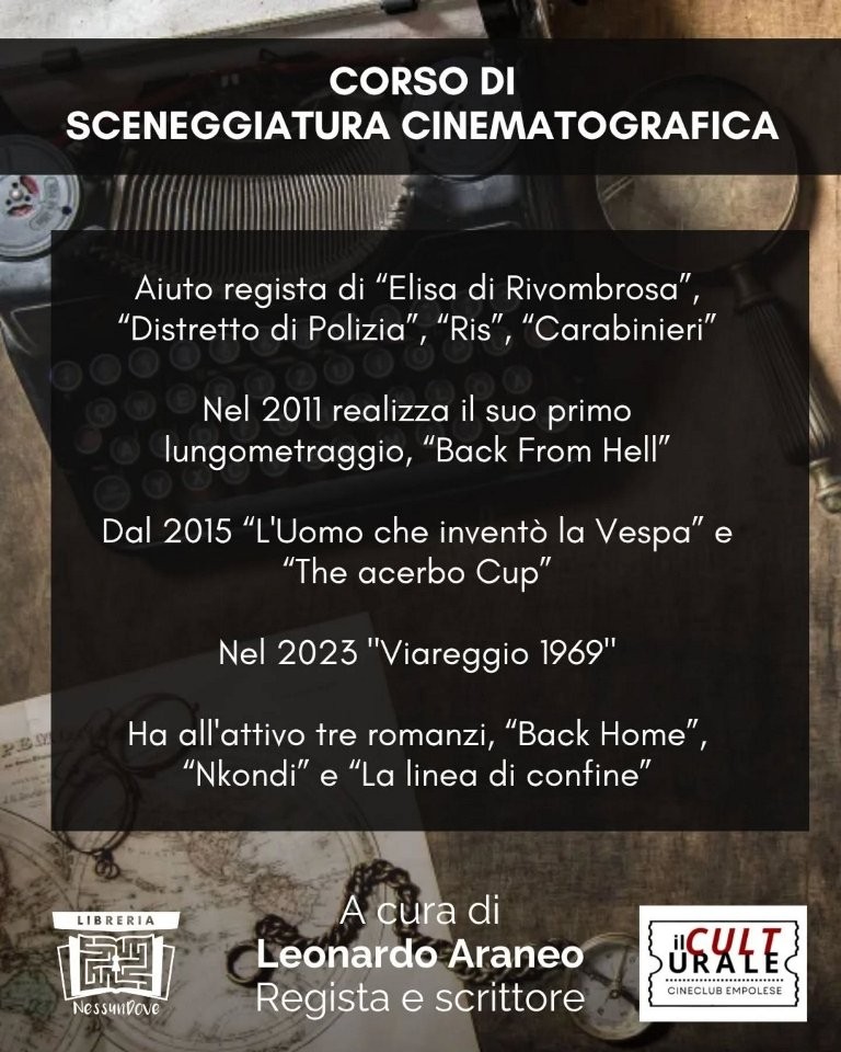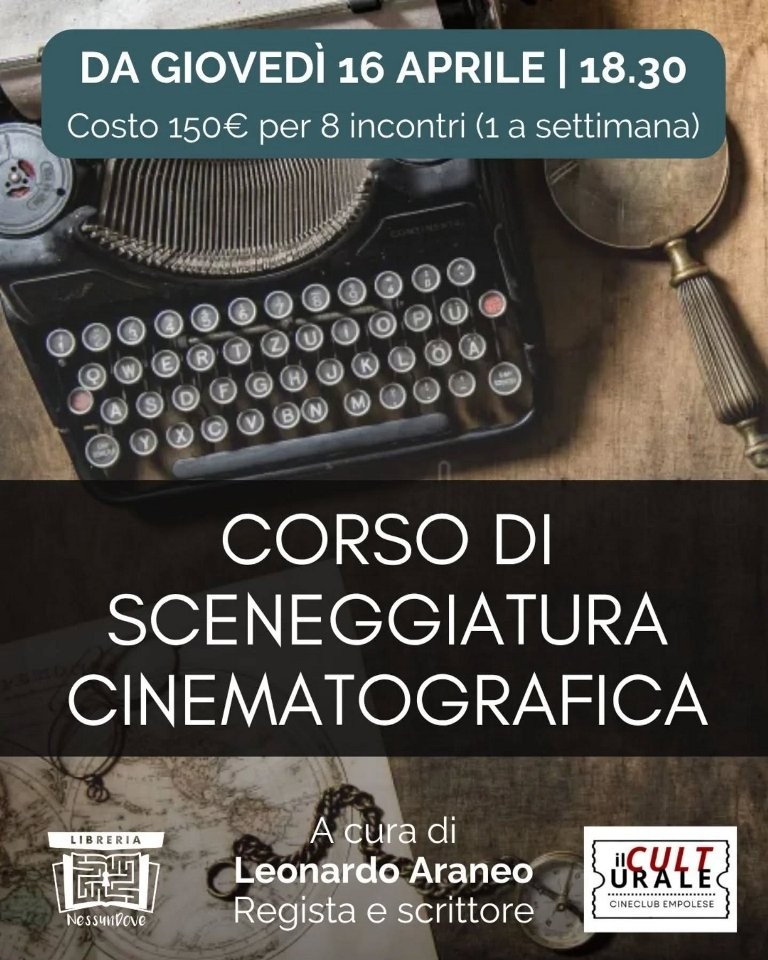La Libreria Nessundove di Empoli ospita un nuovo percorso dedicato a chi ama il cinema non solo da spettatore, ma anche da autore: a partire da giovedì 16 aprile, dalle 18.30 alle 20.30, prenderà il via il corso di sceneggiatura cinematografica tenuto dal regista e scrittore Leonardo Araneo.