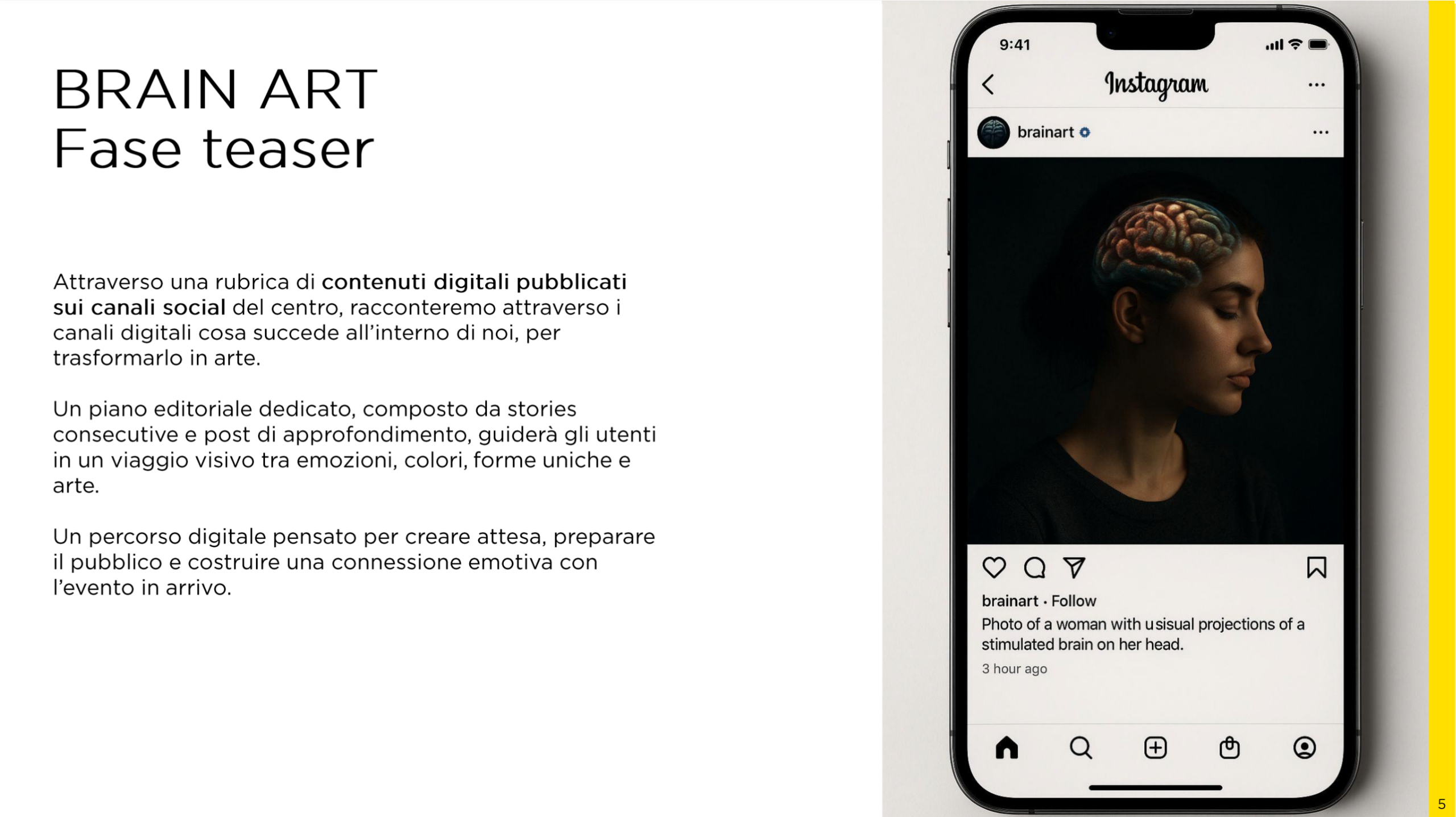 Per due giorni, i visitatori potranno vivere un percorso capace di trasformare le proprie reazioni emotive in opere visive uniche. Indossando un sensore leggero, sarà possibile osservare in tempo reale come la mente risponde a stimoli visivi e sonori: i segnali cerebrali verranno tradotti in colori, forme e composizioni grafiche irripetibili, dando vita a immagini generate direttamente dalle emozioni. Il prodotto artistico di questa esperienza sarà poi stampato e consegnato in omaggio a tutti i partecipanti.