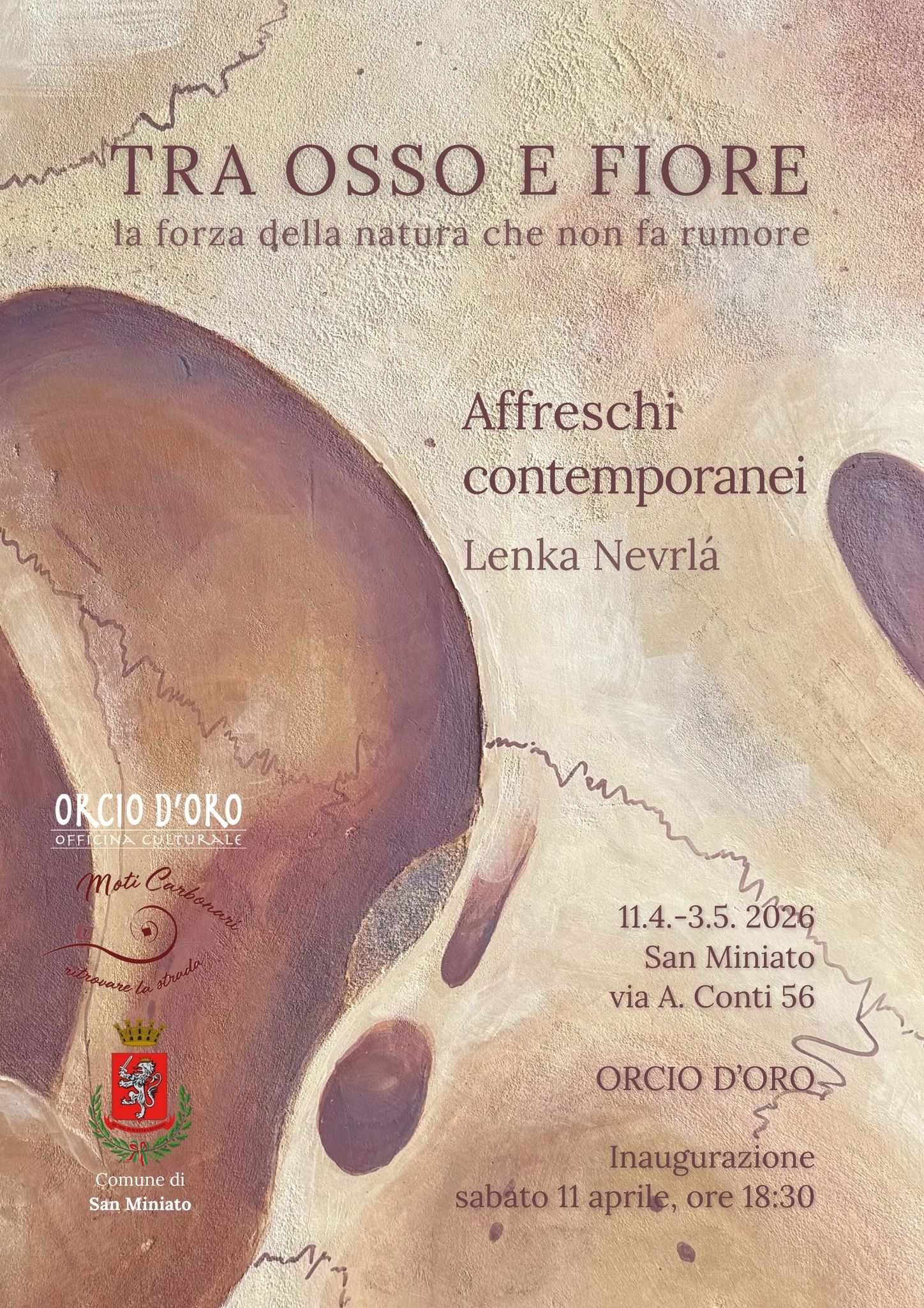 Alle 18 e 30 sarà invece la volta della mostra di LENKA NEVRLÀ, artista di origine ceca, ma ormai italiana a tutti gli effetti (risiede sulle colline intorno a Chianni). Lenka darà vita ad una mostra che, già dalle premesse, si annuncia di grande interesse, proprio perché sarà esposto un vasto ciclo di affreschi che ha realizzato negli ultimi anni, ispirandosi allo splendido ma anche aspro paesaggio che circonda la grande casa patrircale dove vive, sulle colline che portano a Cecina. Si chiama podere Lecciarelli ed è abitato da un'antica famiglia siciliana trasferitasi in Toscana negli anni 50, a partire da un grande feudo che nell'isola era stato oggetto di furti e rapimenti. Lenka abita lì da molto tempo,insieme al marito italiano (titolare di un'azienda di Pontedera che progetta strutture in ferro, come quelle usate per il nuovo ponte Morandi di Genova, quello di Renzo Piano.