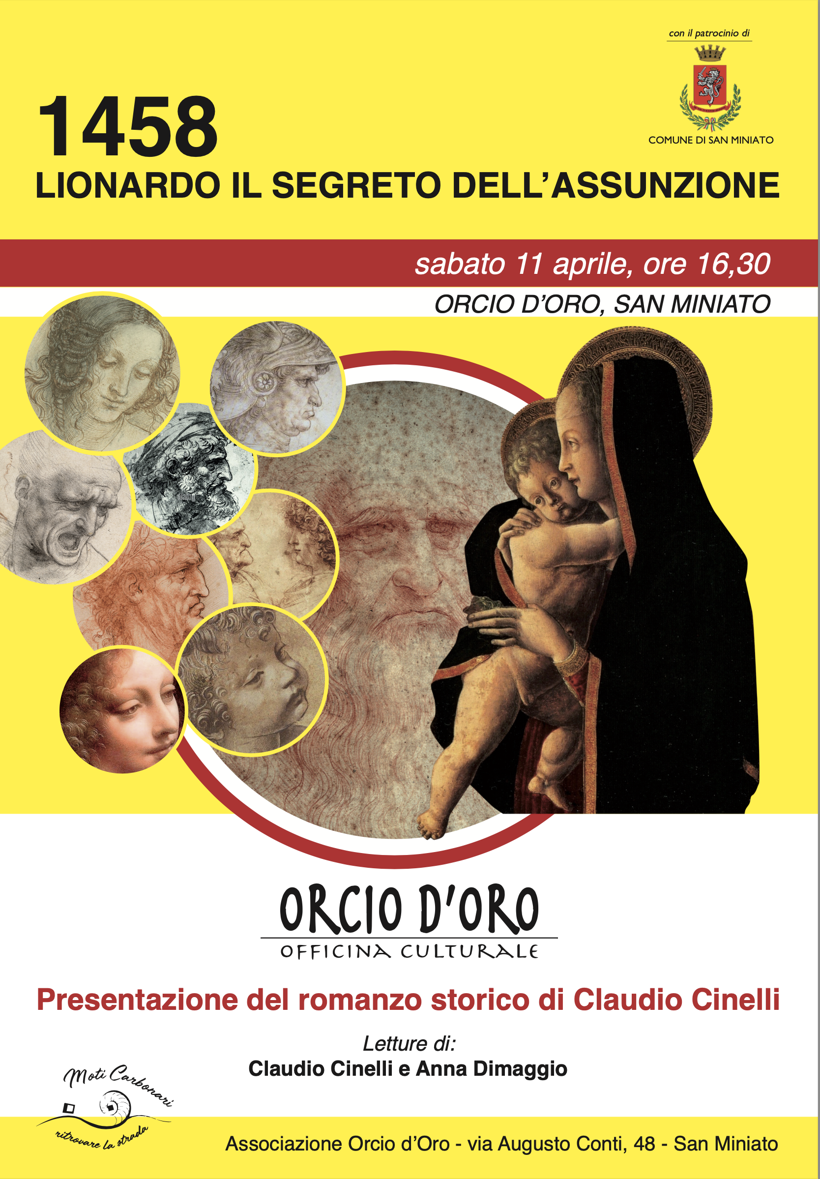 Sabato 11 aprile dalle ore 16 e 30 ancora una straordinaria serata allo Spazio dell'Orcio (via Augusto Conti 48, San Miniato). Si comincia, appunto alle 16 e 30, con "1458. Lionardo, il piacere dell'Assunzione", un libro scritto da CLAUDIO CINELLI, figura straordinaria dello spettacolo contemporaneo, che si è cimentato con la vicenda familiare di questo personaggio - Leonardo Da Vinci - a cui sono state dedicate ricostruzioni di fantasia, come appunto quella davvero intrigante scritta da Cinelli. In realtà Claudio è un eccezionale burattinaio che lavora da sempre in tutti i teatri del mondo, ad esempio al Teatro Regio di Torino, dove si occupa di regia e di scenografia, in spettacoli meravigliosi, ripresi più volte. Cinelli sarà insieme ad Anna Dimaggio, anche lei bravissima attrice, spesso apprezzata anche dal pubblico dell'Orcio.
