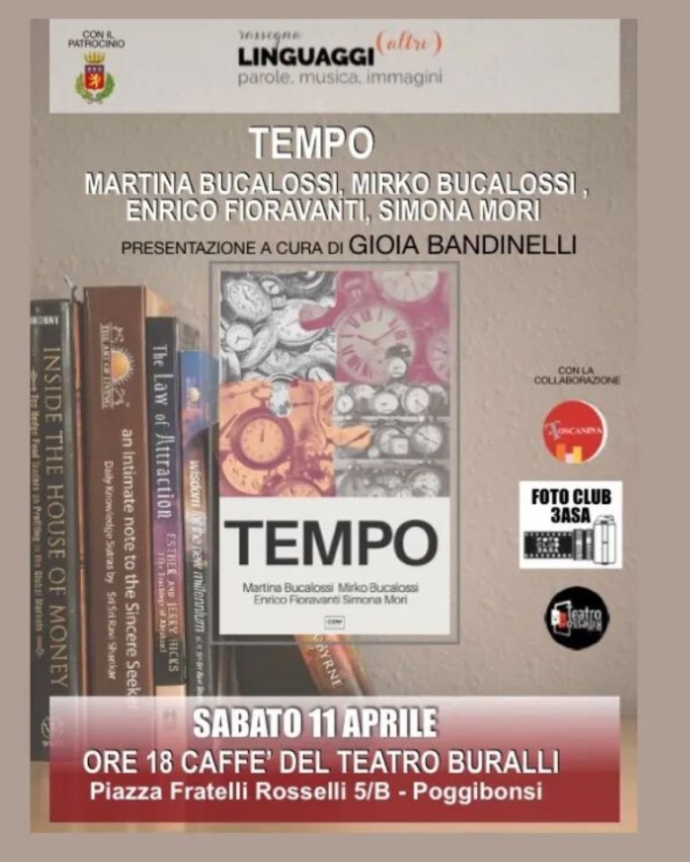 La celebrazione del lavoro svolto inizia sabato con la presentazione del libro "Tempo"(2025). Un volume nato sotto la direzione di Elisabetta Lubrani con gli autori: Martina Bucalossi, Mirko Bucalossi, Enrico Fioravanti e Simona Mori. L'evento si inserisce nella prestigiosa cornice di "Linguaggi (altri)", rassegna che gode del patrocinio del Comune di Poggibonsi e della collaborazione di partner d'eccellenza come Teatro Riflesso, La Toscanina e Foto Club Tre Asa.