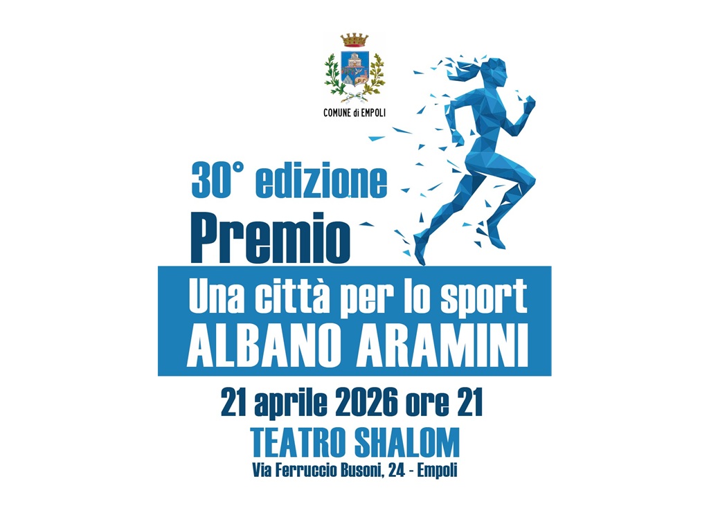Il prestigioso riconoscimento “Premio Una città per lo Sport Albano Aramini 2026” compie trent’anni e sarà consegnato alle vincitrici e ai vincitori nella cerimonia ufficiale che si terrà martedì 21 aprile 2026, alle 21, al Teatro Shalom (via Ferruccio Busoni, 24, Empoli).