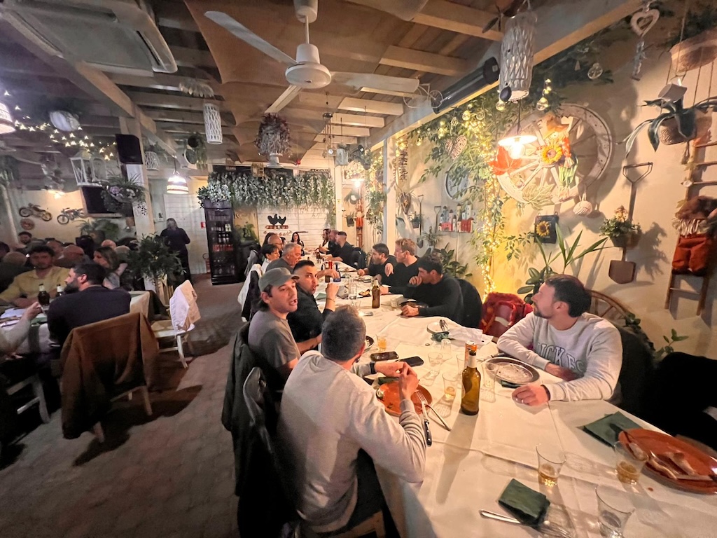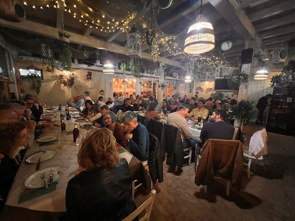 La cena, semplice e conviviale, ha previsto pizza, bevande e dolci tipici come cantuccini e Vin Santo. Un momento di condivisione che ha accompagnato gli interventi e i ricordi, contribuendo a creare un’atmosfera allo stesso tempo serena e rispettosa.